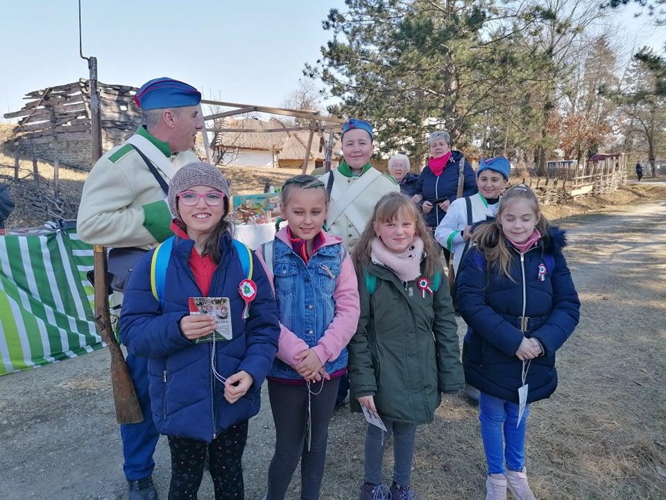A hagyományokhoz híven a Klapka György Lovas Polgárőr és Hagyományőrző Egyesület, valamint anyaiskolánk közös szervezésében nyitotta meg kapuit nemzeti ünnepünk megyei rendezvénye. Megérkezésünkkor minden kisdiák kapott egy pecsétgyűjtő lapocskát. A nap folyamán erre kaptak pecsétet minden próba teljesítése után. Az összes feladat az 1848-49-es forradalom és szabadságharchoz kapcsolódott. A gyermekek lelkesen járták végig a házakat és gyűltek a pecsétek. Közben lovasbemutató és zenei programok is zajlottak, valamint kihirdették a rajzverseny díjazottjait. Iskolánkból Balogh Fruzsina és Fehér Jázmin kaptak könyvet és elismerő oklevelet. Büszkék vagyunk rájuk. A nap végén, akinek betelt a lapja huszárrá avatták, kis csákót kapott és részt vehetett a csatában. A labancokat kellett kiűzni a Falumúzeumból. A kis huszárok lelkesen üldözték és el is fogták az ellenséget. Szép élményekkel tértünk haza. Mindenki jól érezte magát. Köszönjük a lehetőséget!