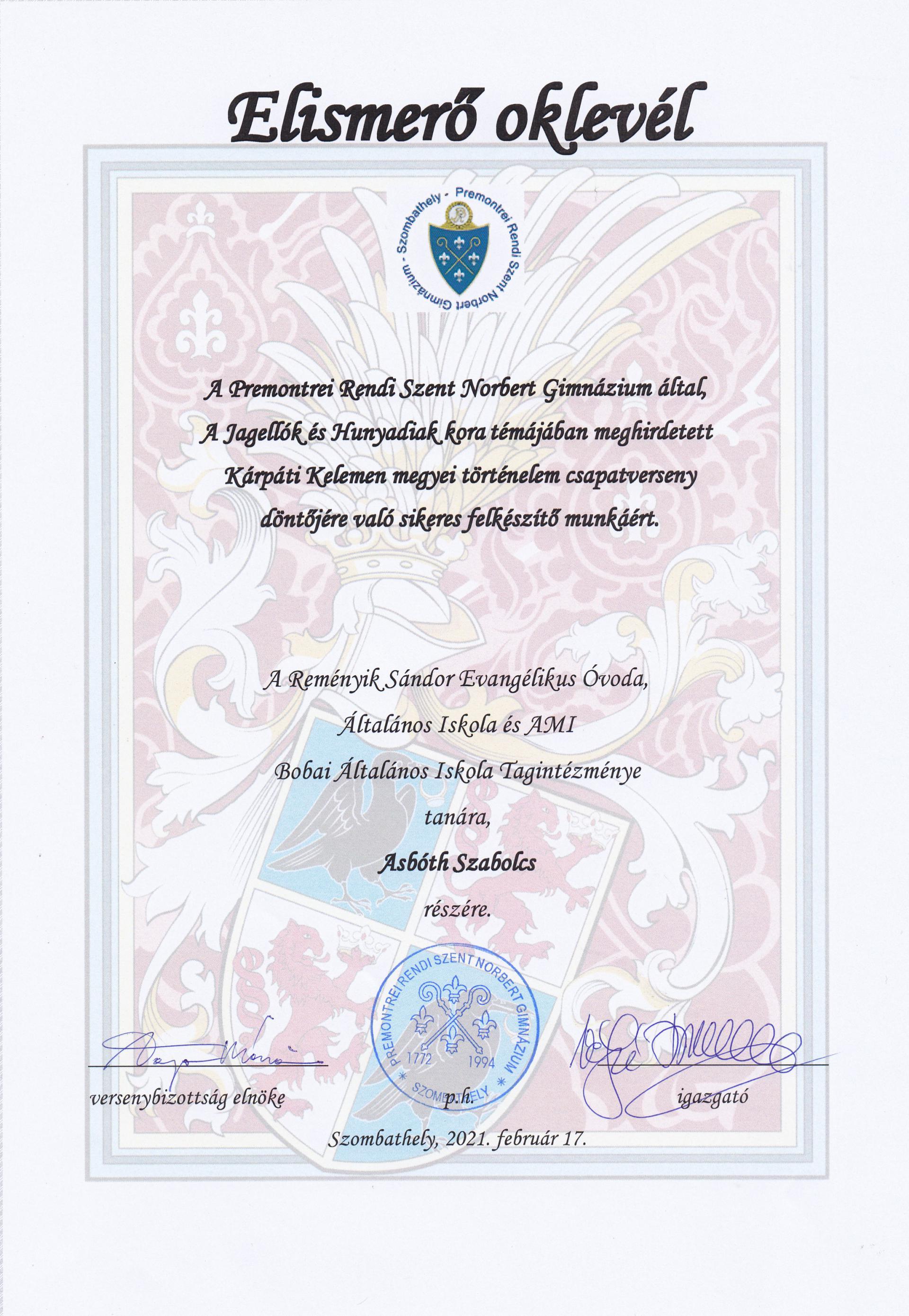 A Premontrei Rendi Szent Norbert Gimnázium által szervezett, a Jagellók és a Hunyadiak kora témájában megrendezett Kárpáti Kelemen megyei történelem csapatverseny döntőjébe idén kettő 8. osztályos csapatunk is bejutott.