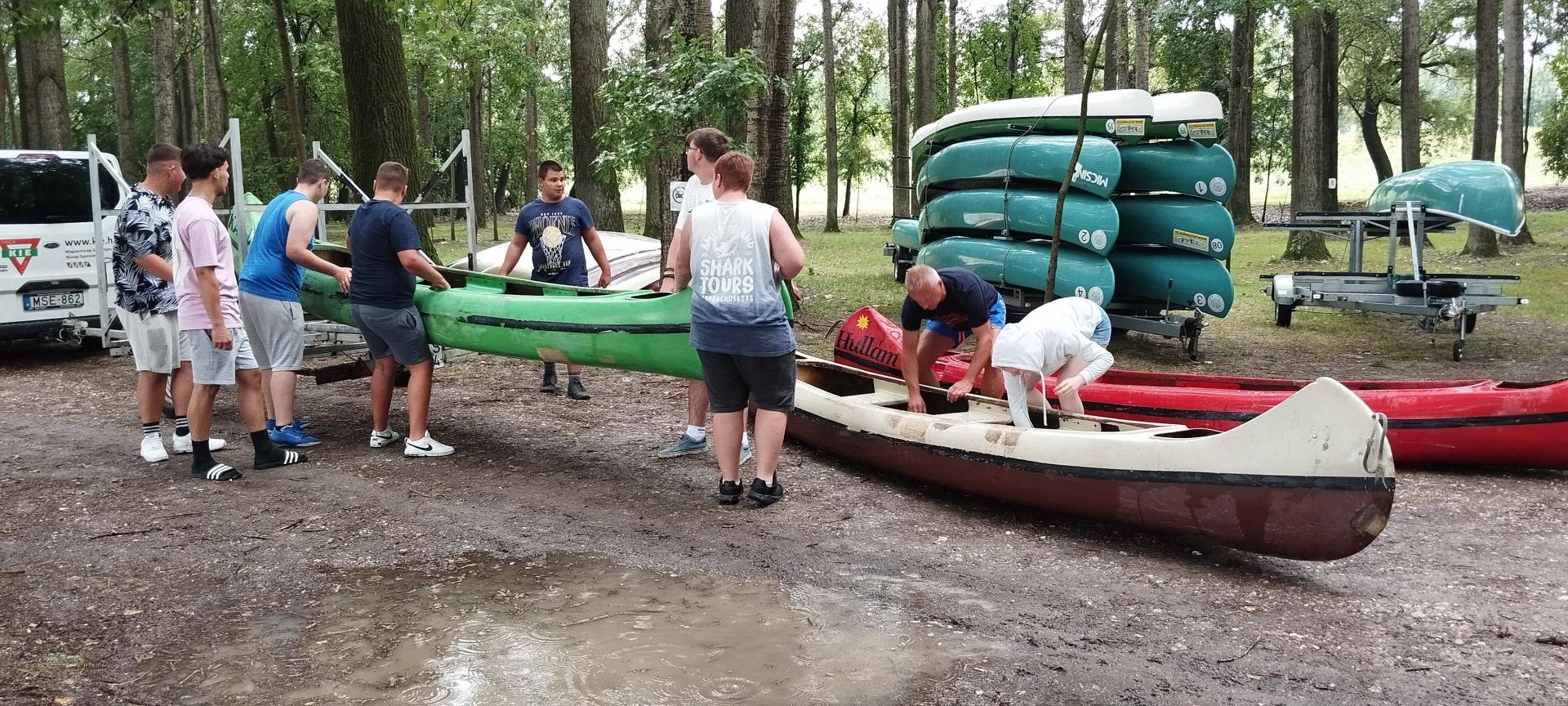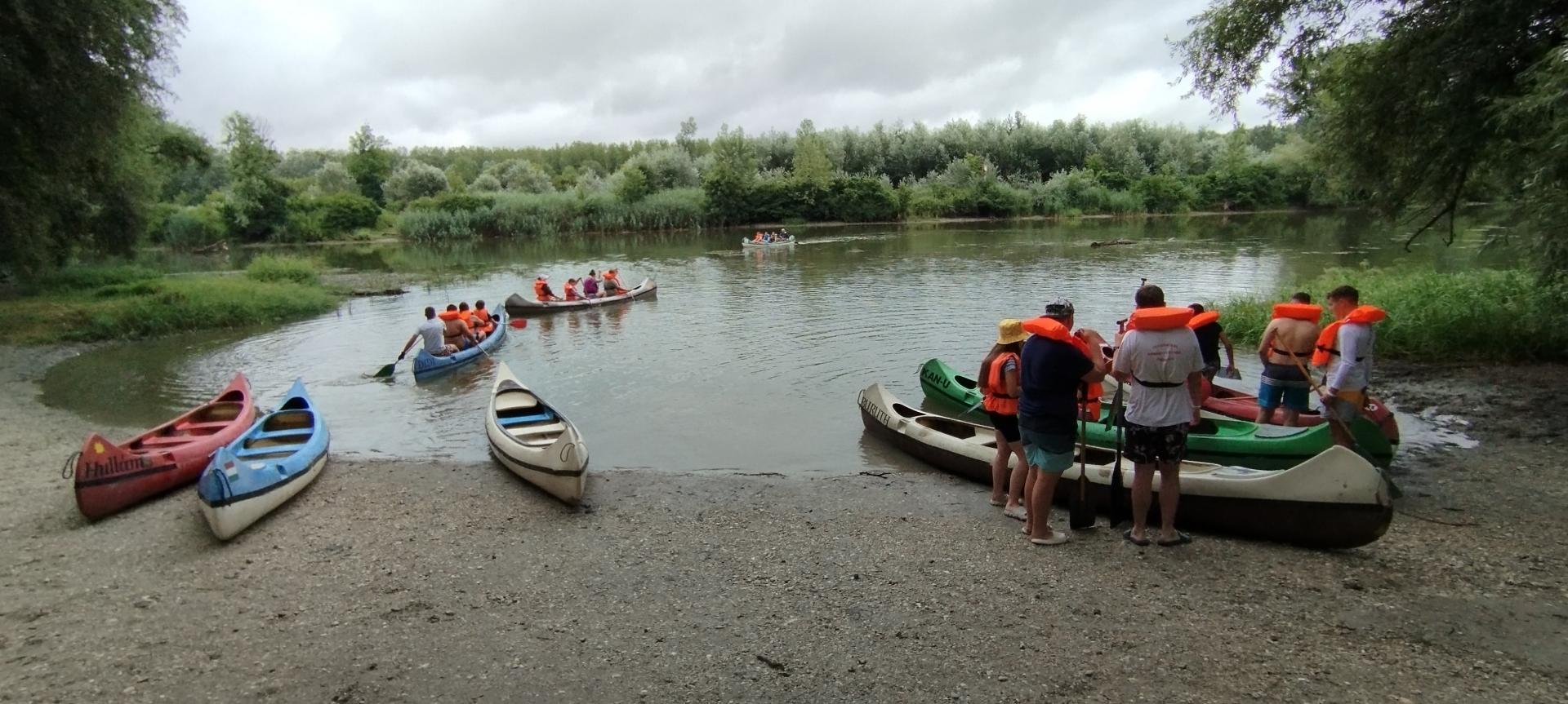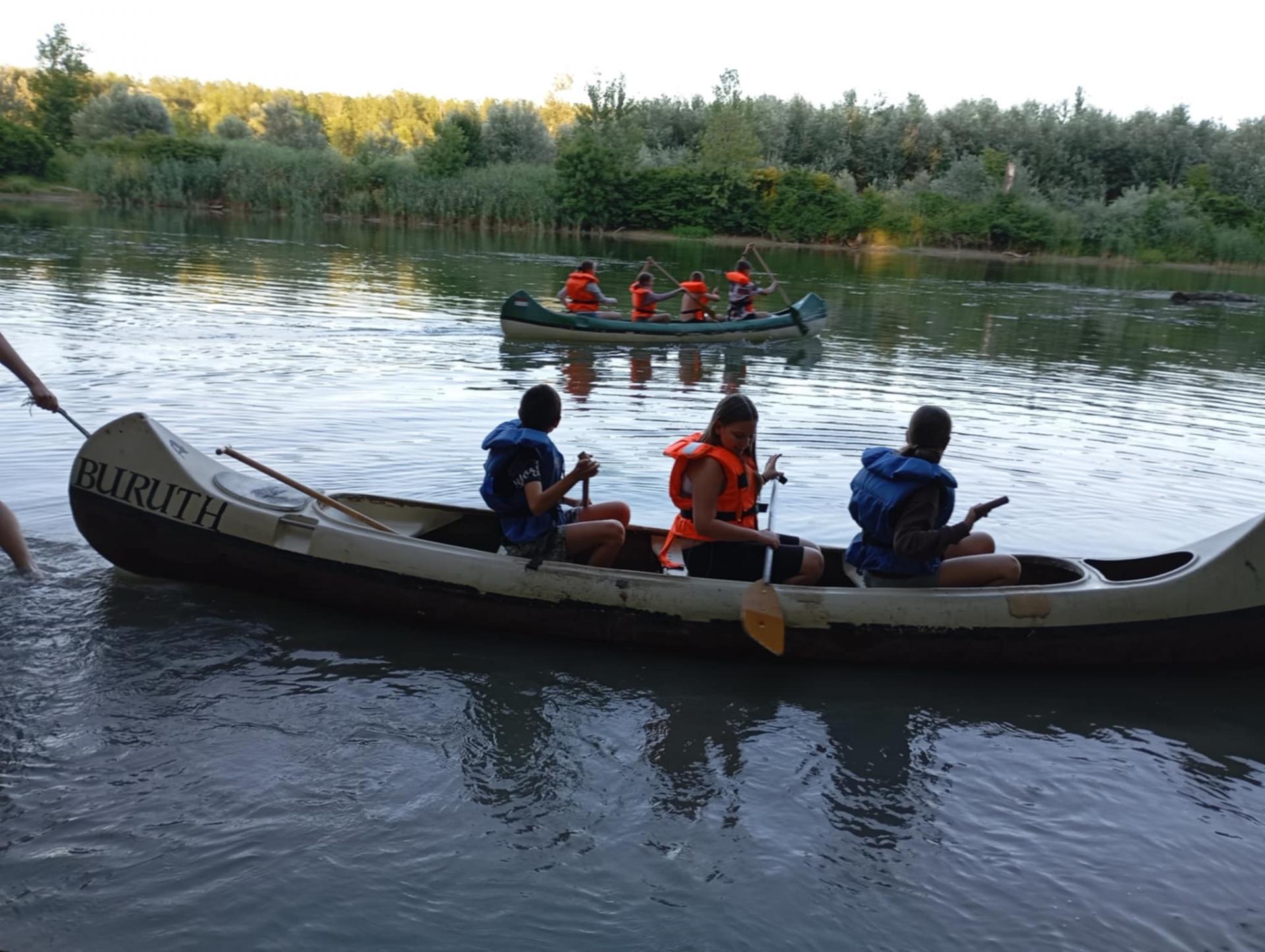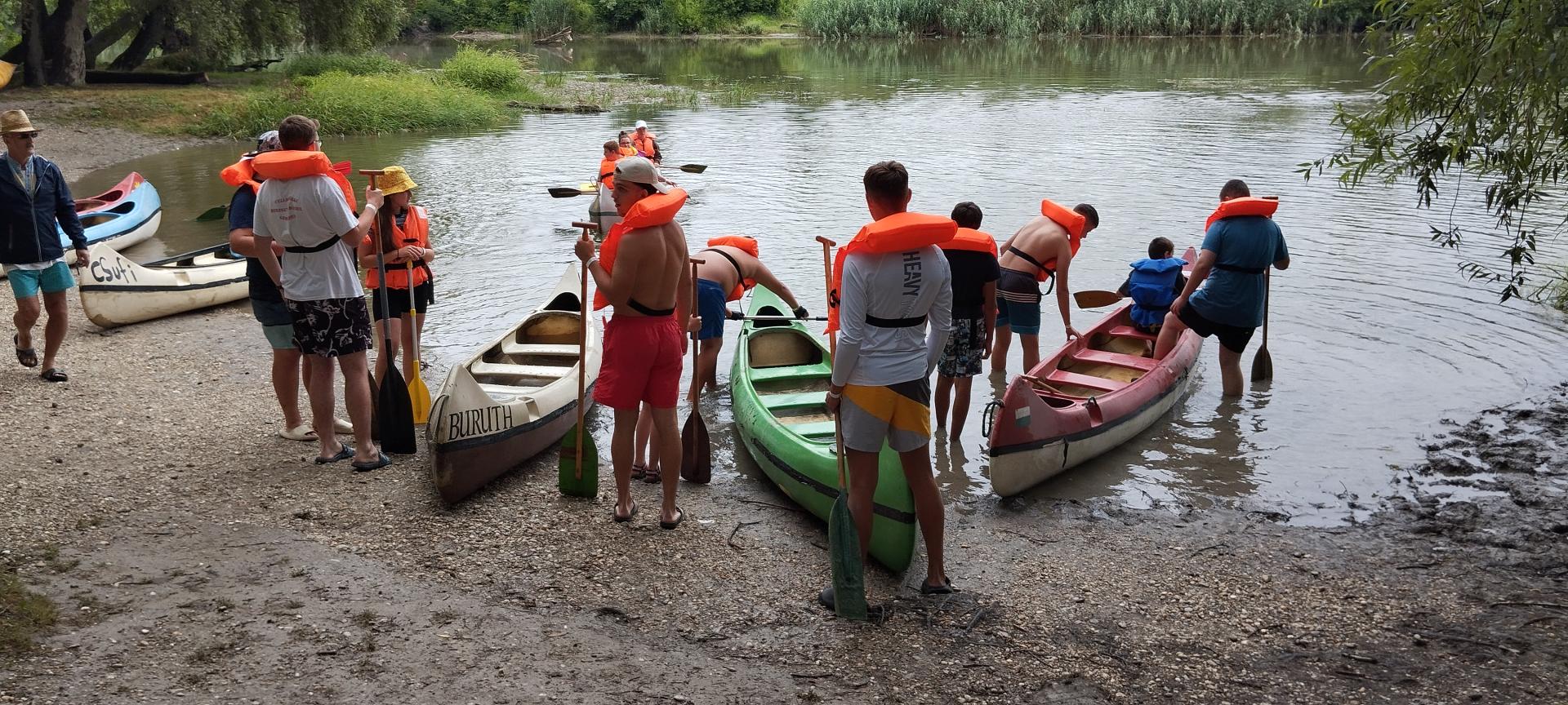 Mindezek után kenukba osztottuk diákjainkat és a tábor előtti szakaszon gyakorolhatták is azt, amit az oktatáson hallottak. A hajók legénysége innentől fogva már állandósult. Kialakultak a szerepkörök, hogy ki a kormányos, az első evezős és az evezősök.