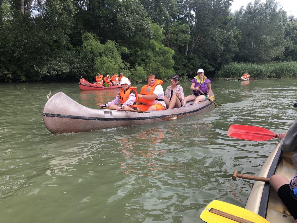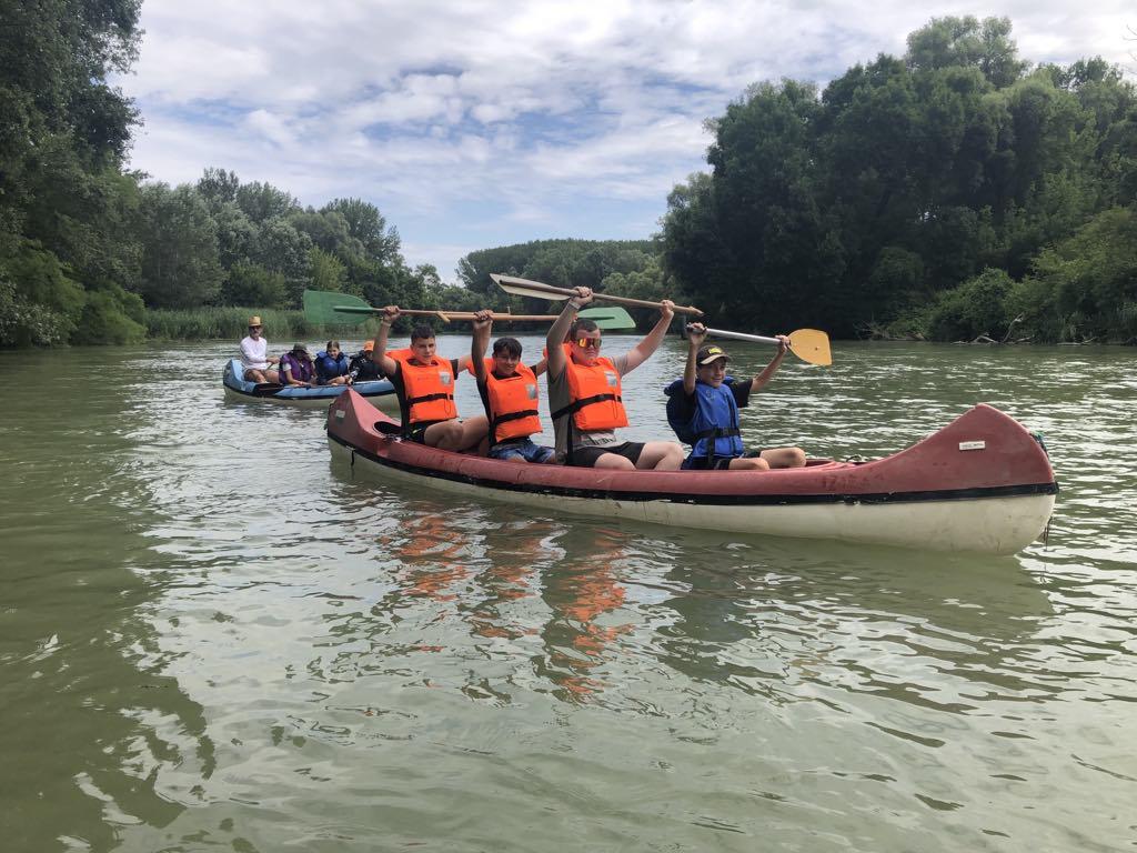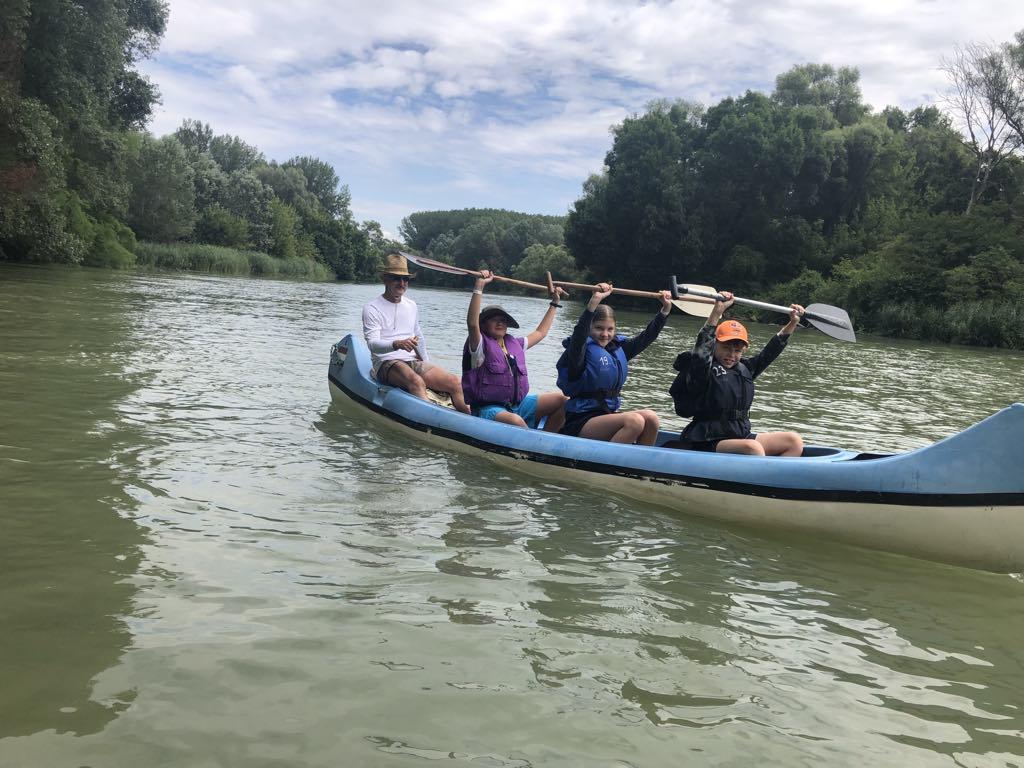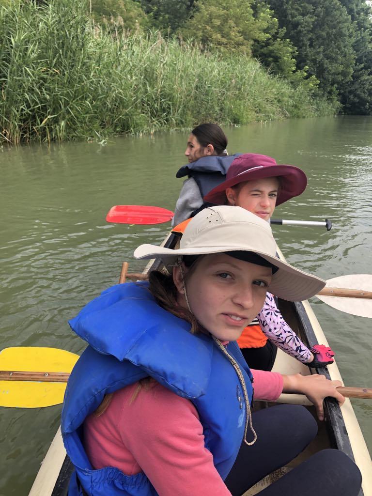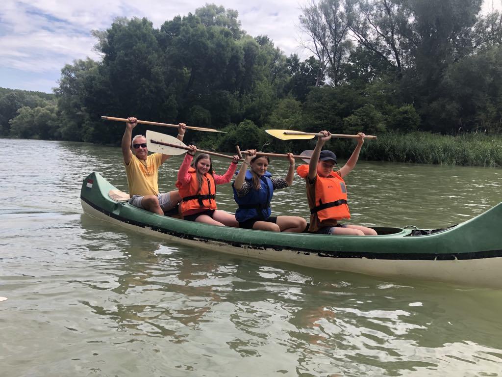 Pénteken már egy közel hat órás túrán is részt vehettünk. Eközben vadvizeken, bukókon és elhagyatott mellékágakon haladtunk keresztül és ismerkedtünk a Szigetköz állat-és növényvilágával. Diákjaink testközelből ismerkedhettek meg azzal is, hogy mi a teendő ha éles helyzetben borulás történik egy túrán.