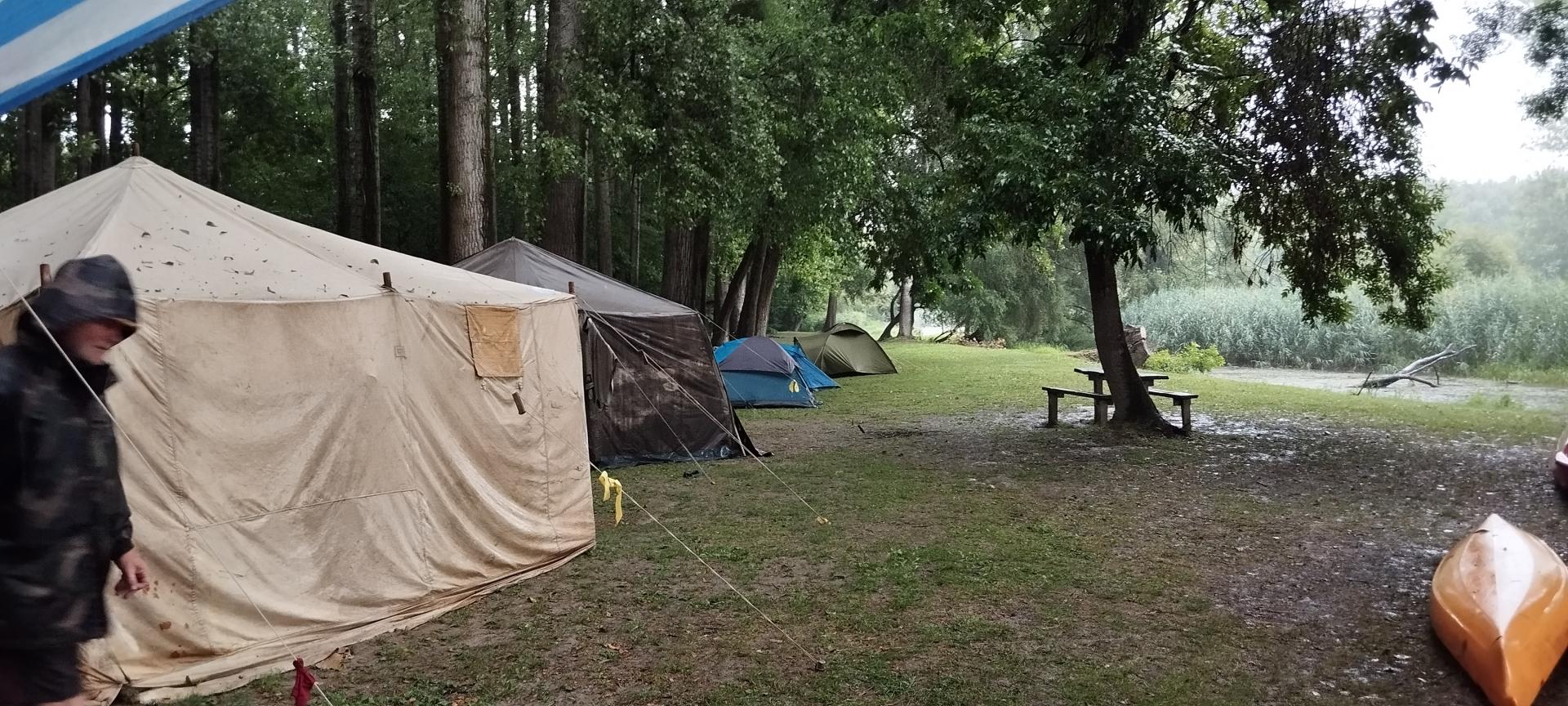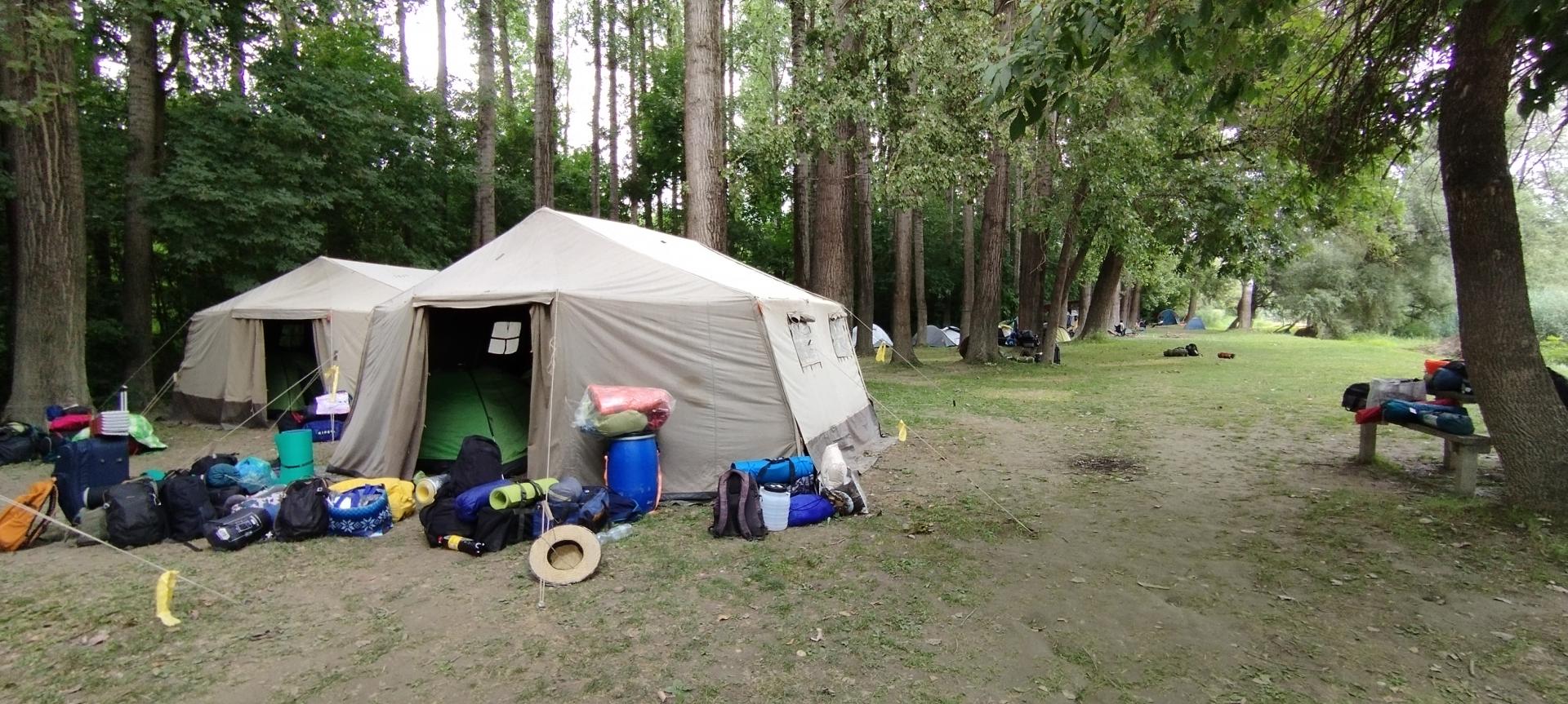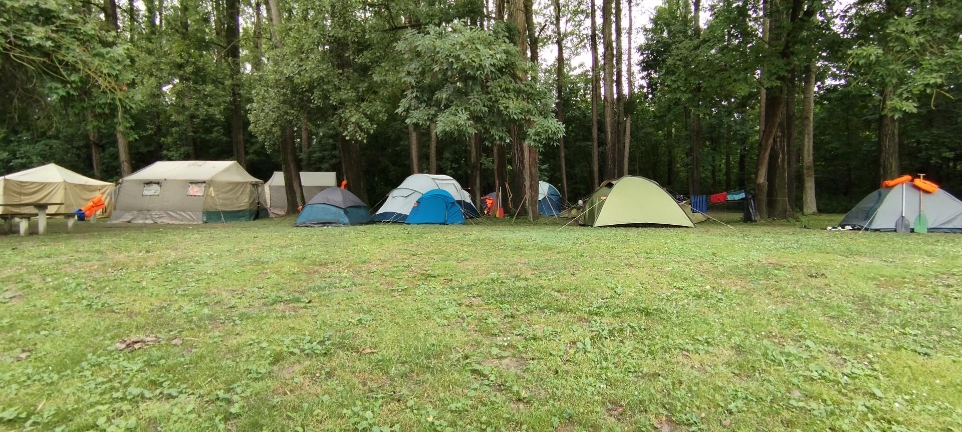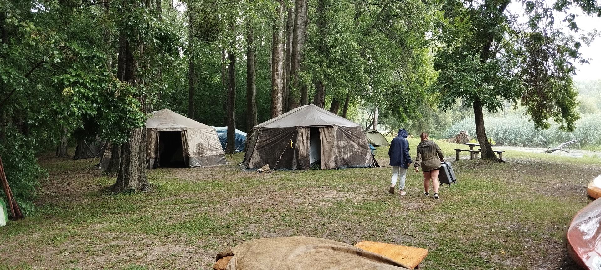 Megérkezésünk után enyhe esőben építettük fel sátrainkat majd megismerkedtünk a tábori élet szabályaival. A felszerelésünk (mentőmellény, evező) átvétele után elsajátítottuk a mentőmellény használatát és a kenuzás alapjait.
