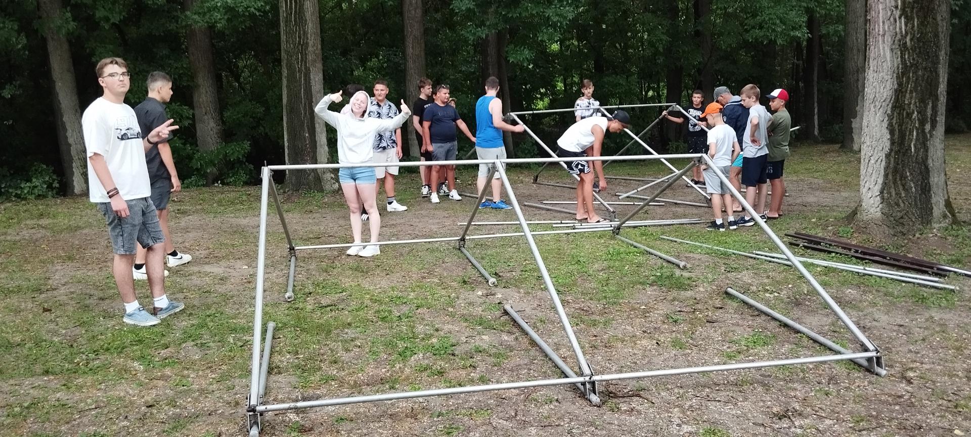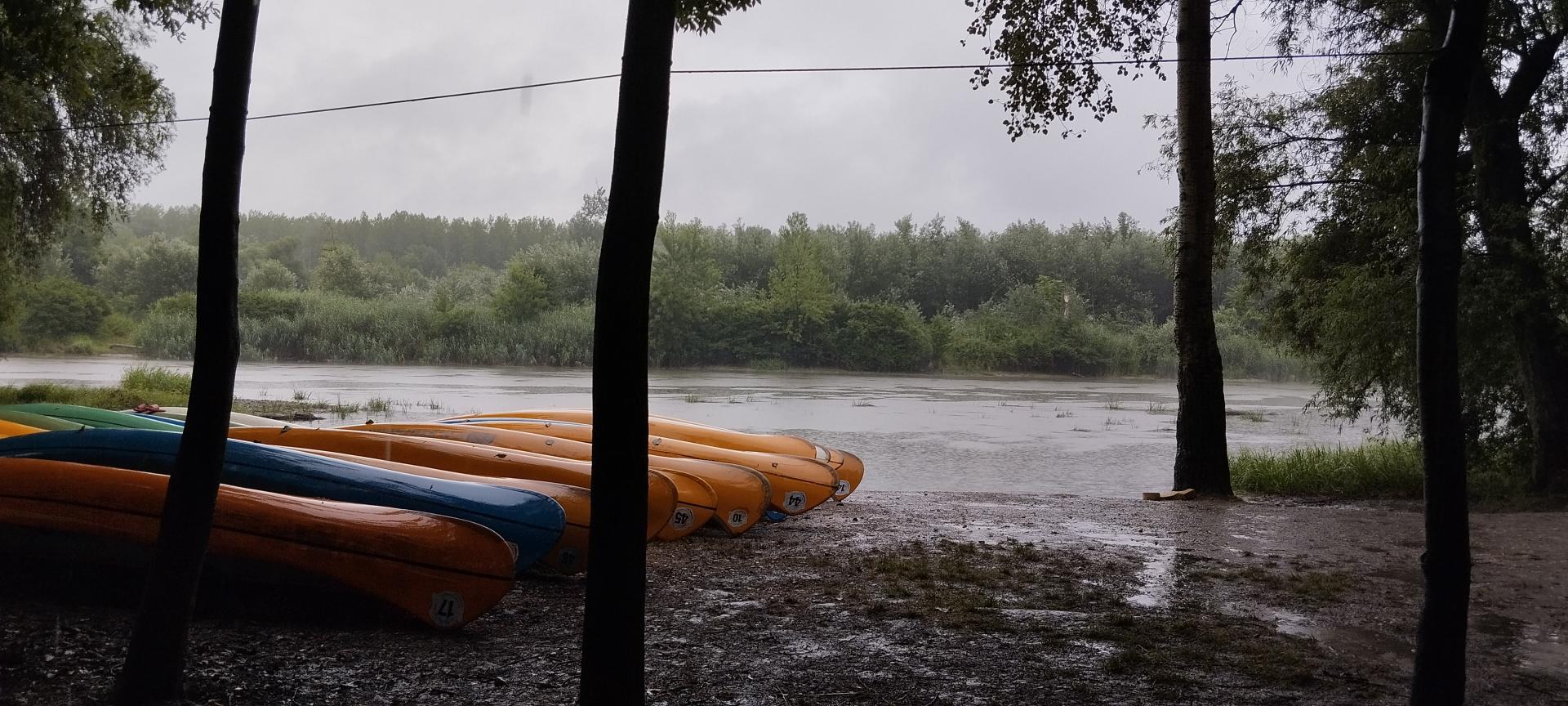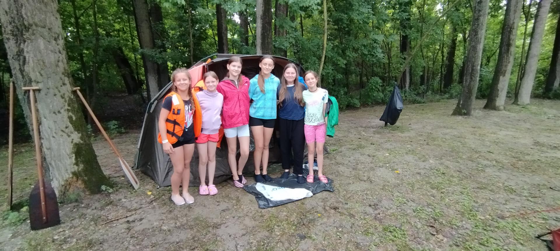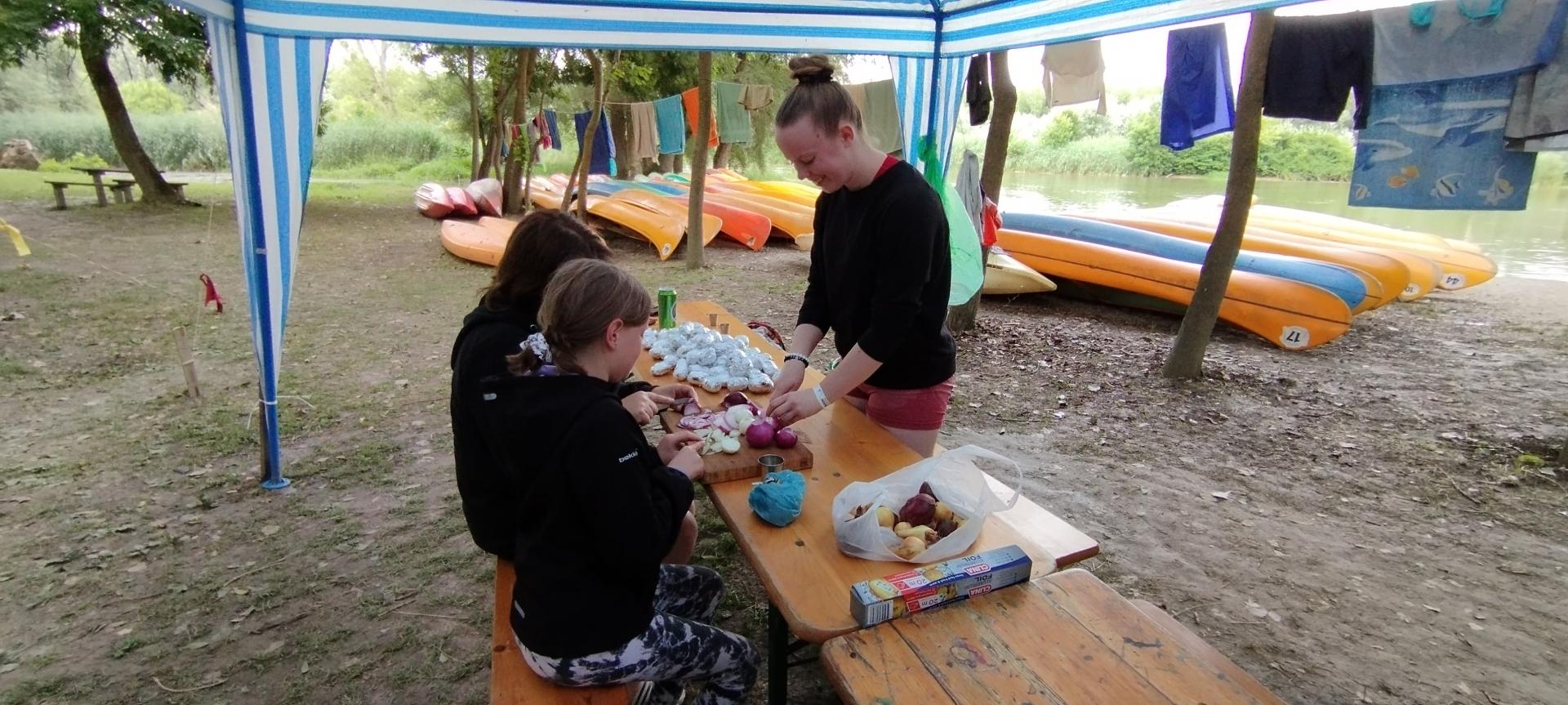 Megérkezésünk után enyhe esőben építettük fel sátrainkat majd megismerkedtünk a tábori élet szabályaival. A felszerelésünk (mentőmellény, evező) átvétele után elsajátítottuk a mentőmellény használatát és a kenuzás alapjait.