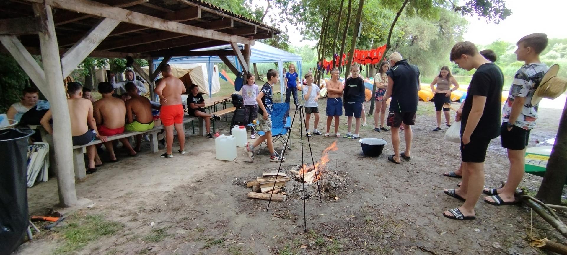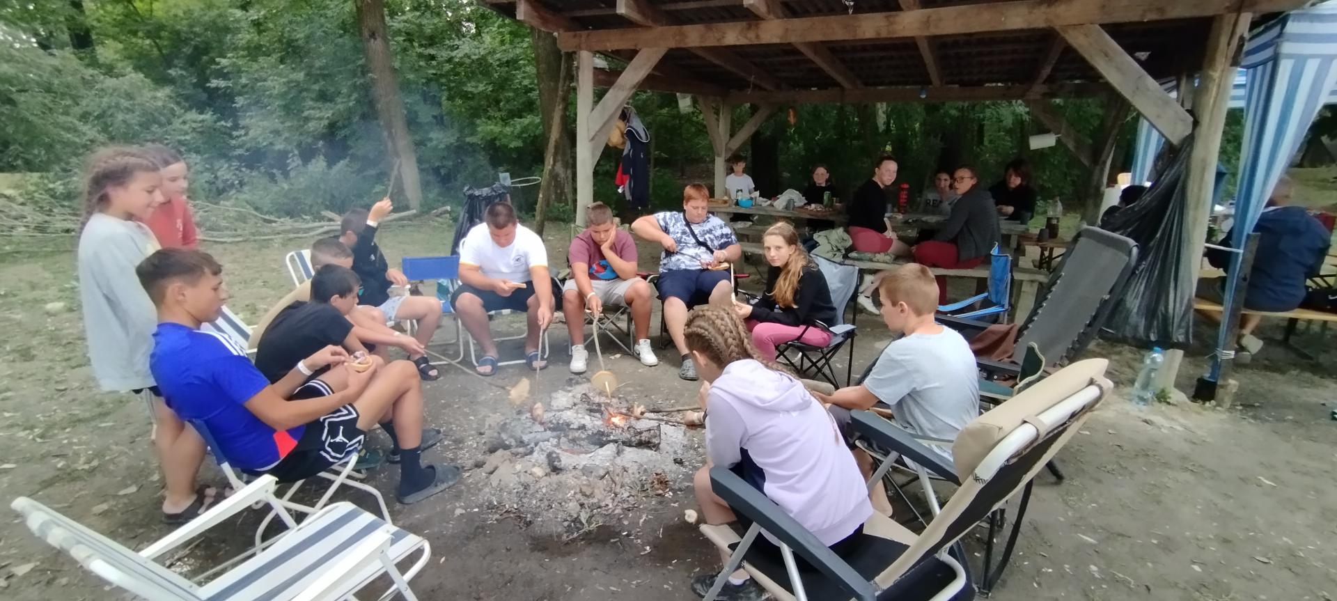 A tábori élet hagyományos részeire is nagy hangsúlyt fektettünk, volt gulyásfőzés, szalonnasütés, mályvacukor sütés és hamuban sült krumpli. Mint minden estét, az utolsót is tábortűzzel zártuk le.