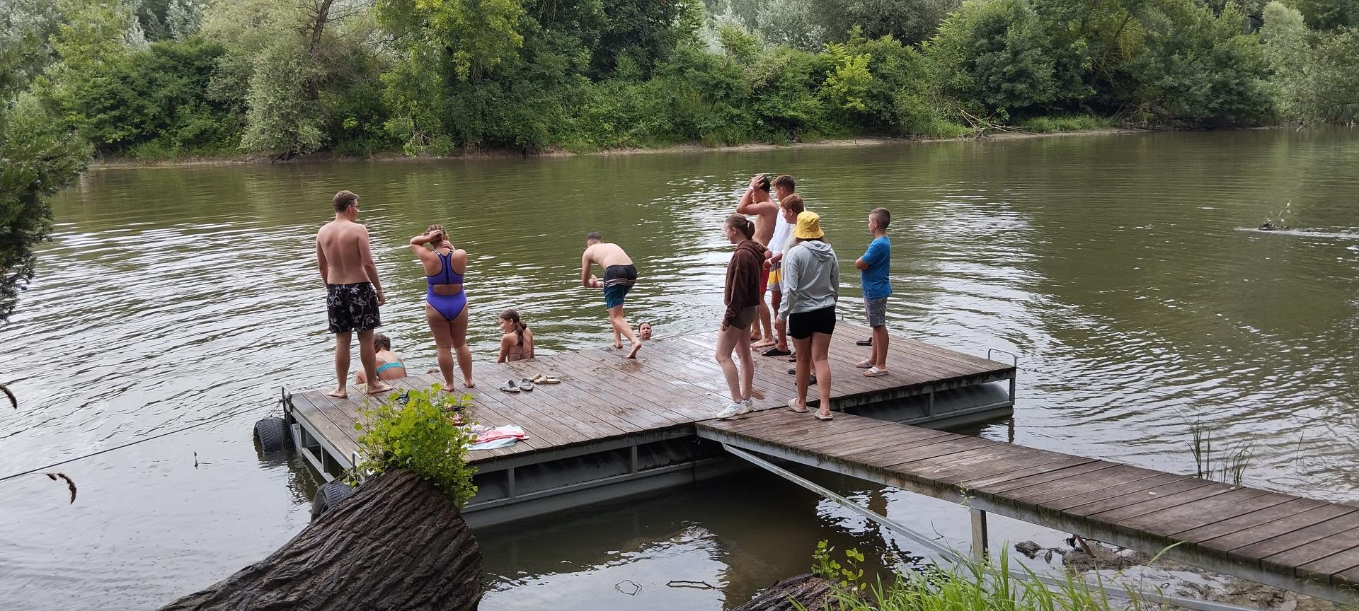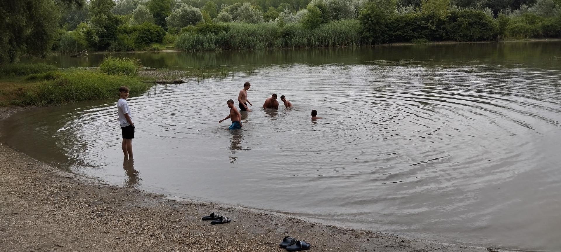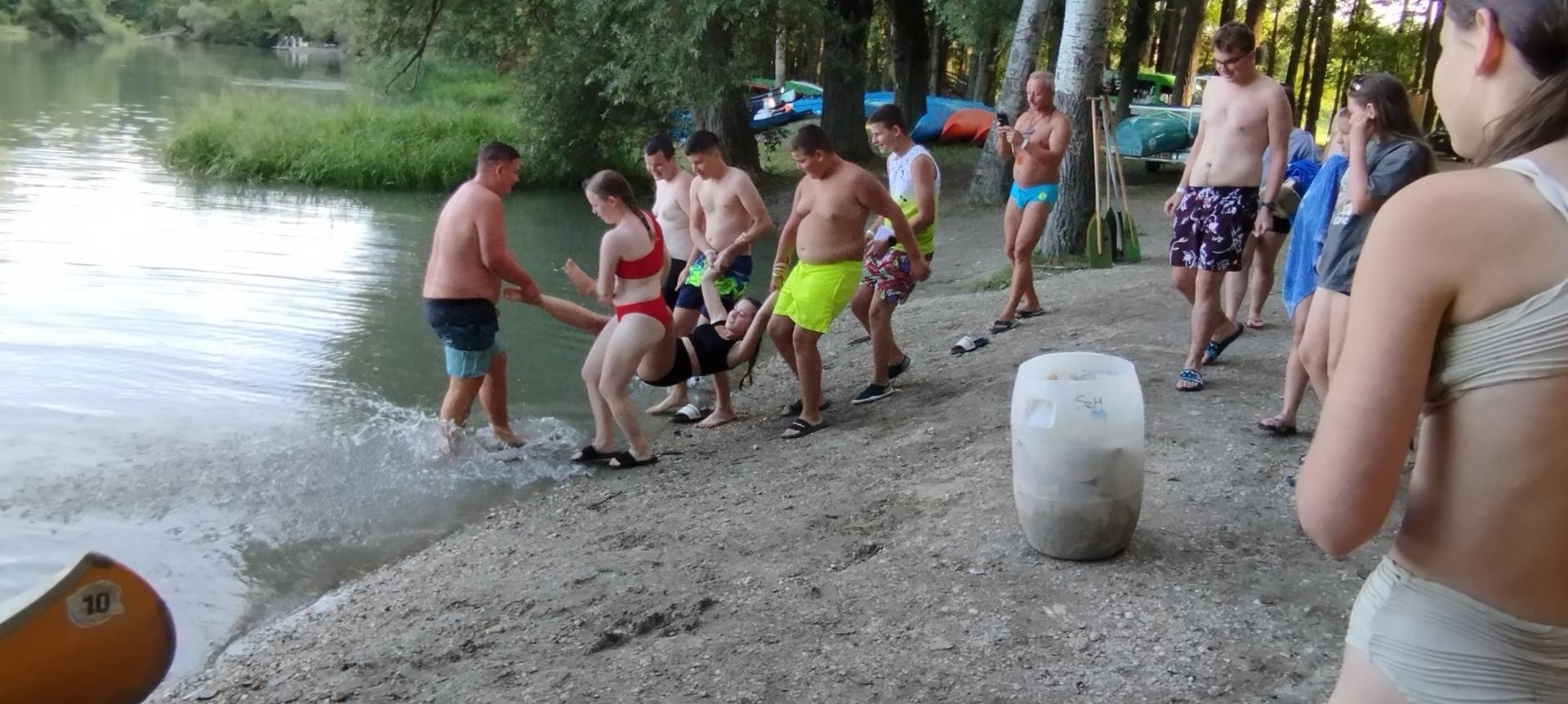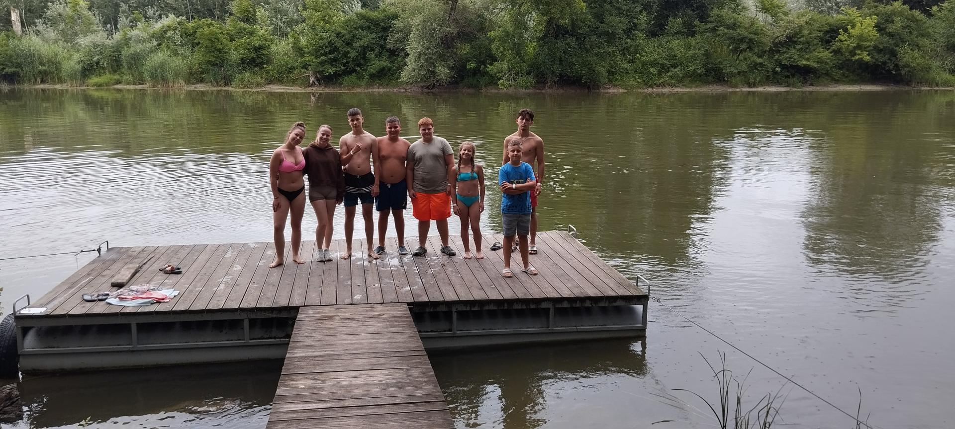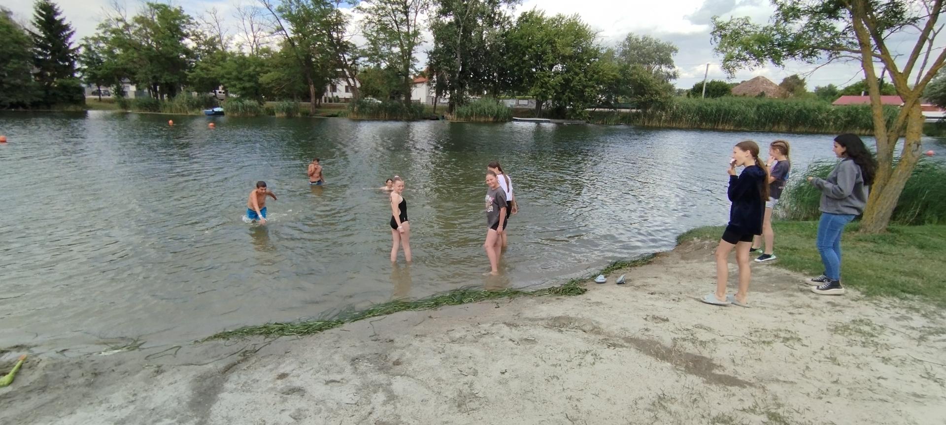 Tanulóink felügyelet mellett szinte minden nap, amikor az időjárás is engedte fürödhettek a kempinghez tartozó Duna szakaszon.