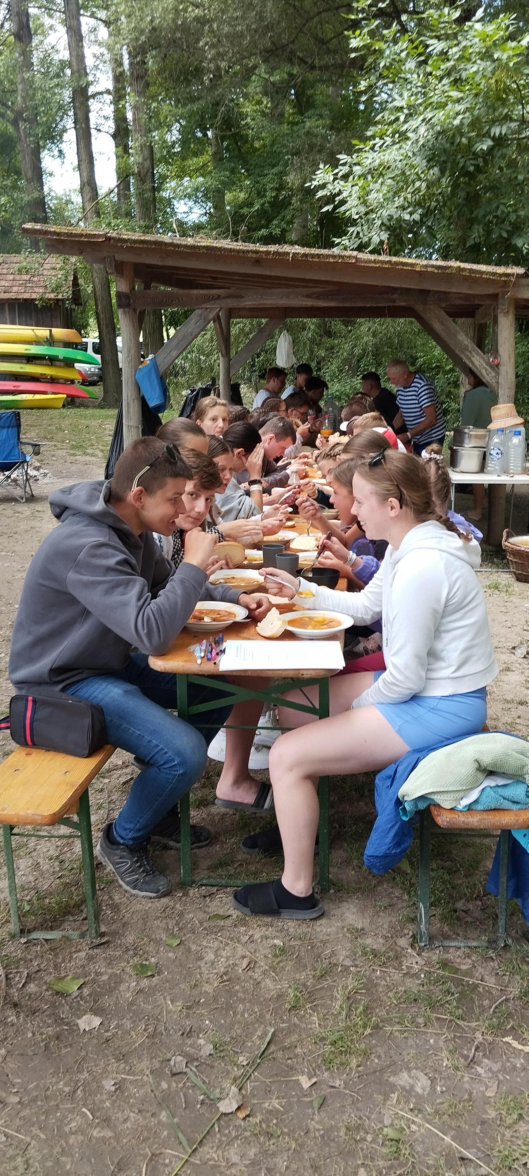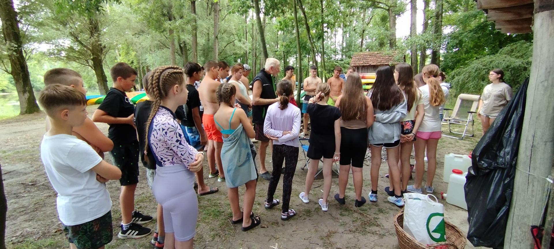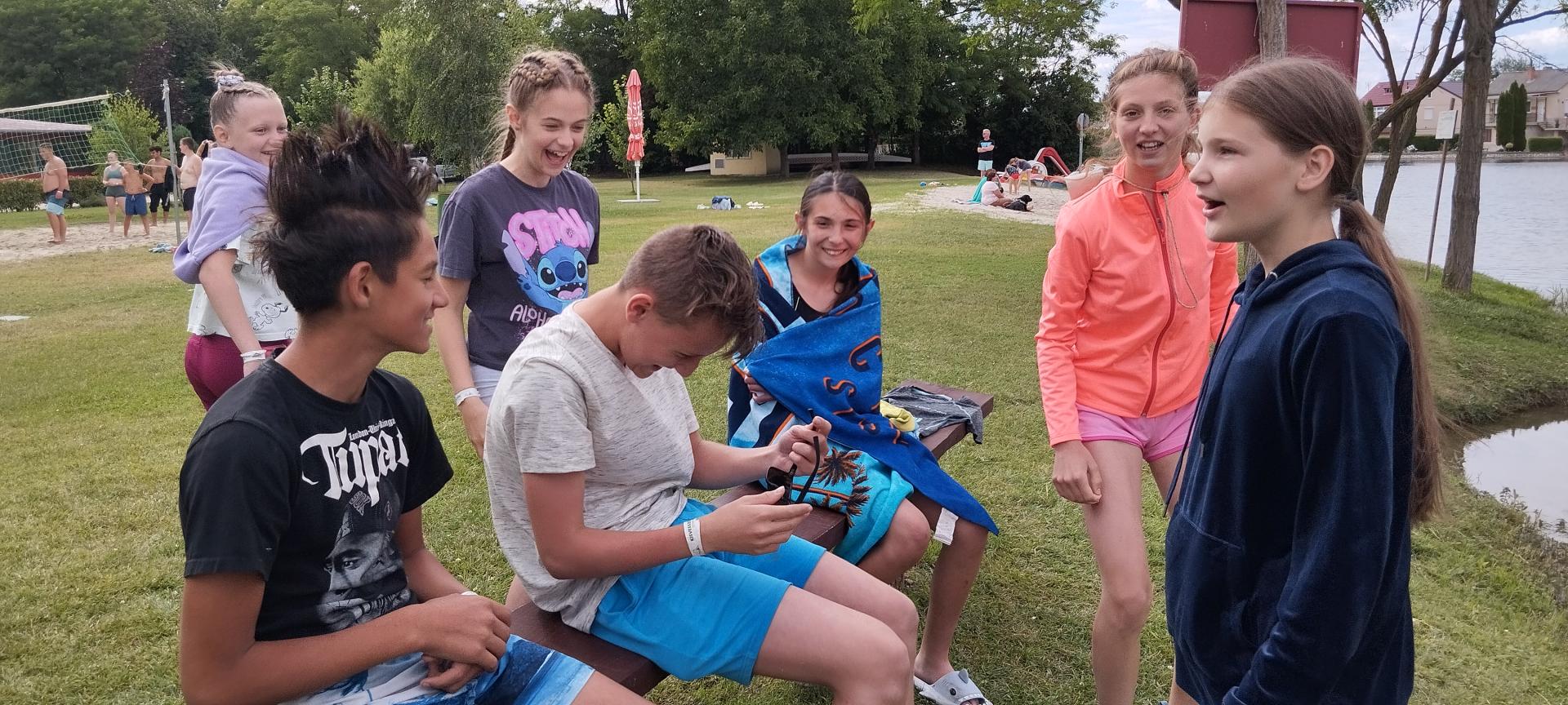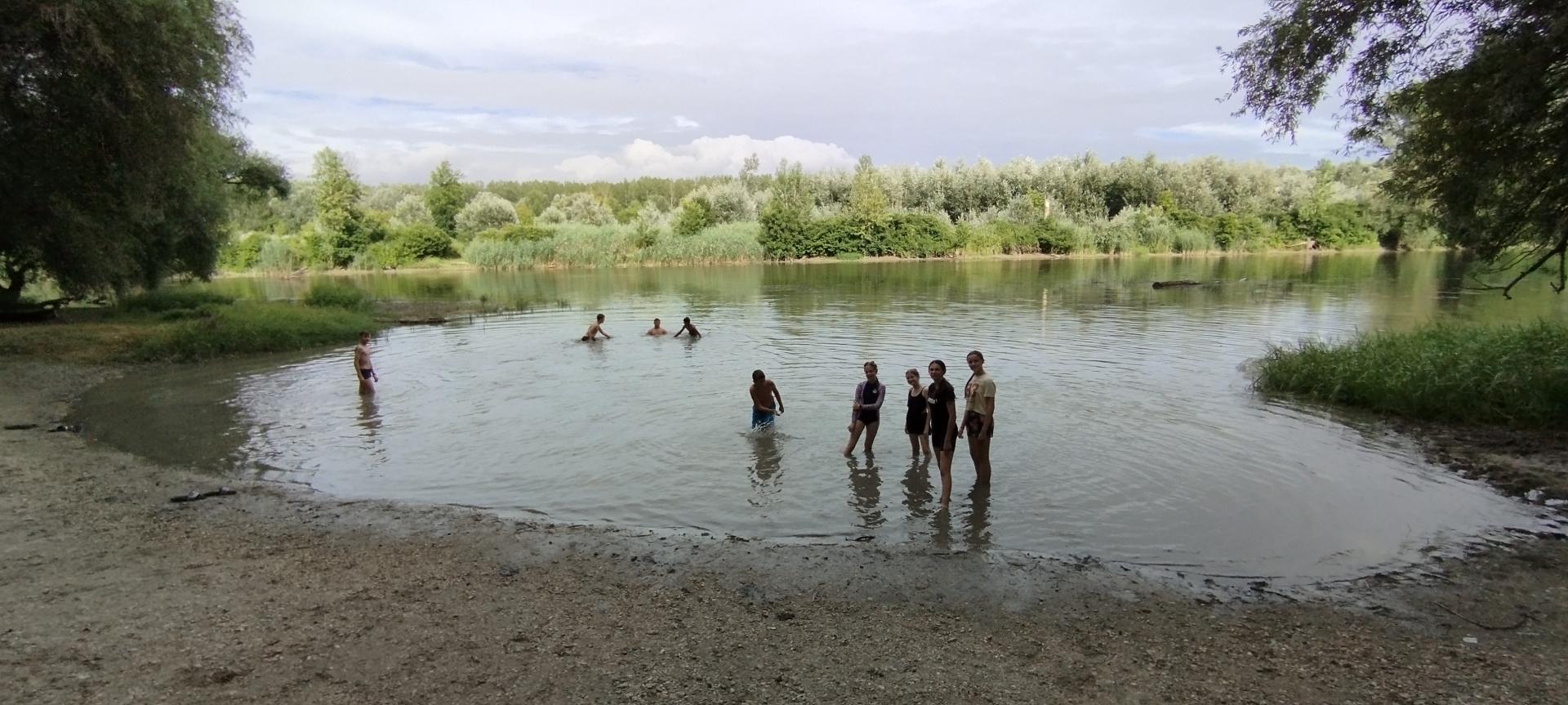 Tanulóink felügyelet mellett szinte minden nap, amikor az időjárás is engedte fürödhettek a kempinghez tartozó Duna szakaszon.