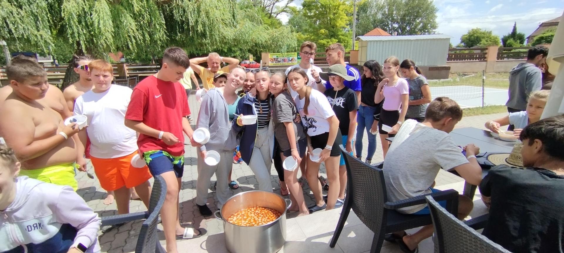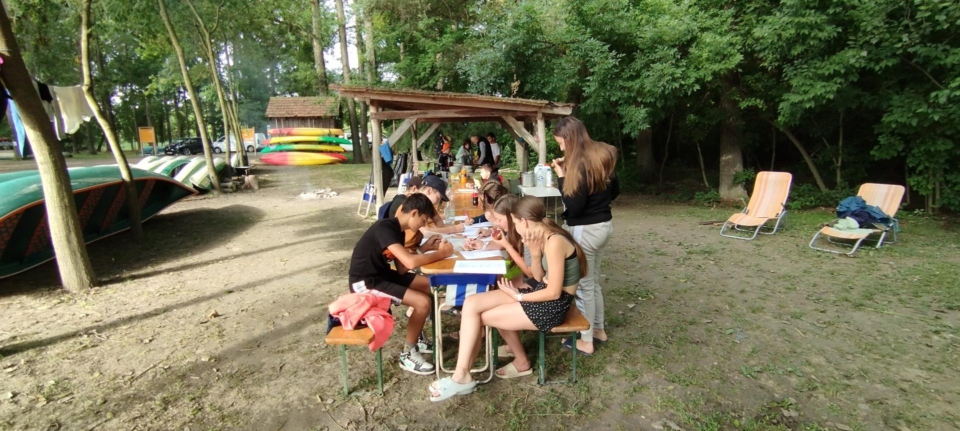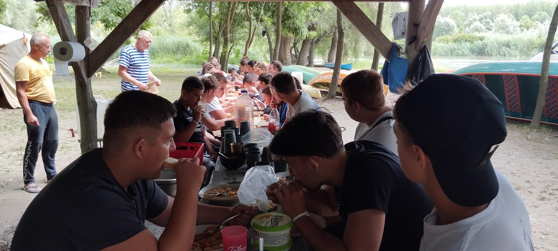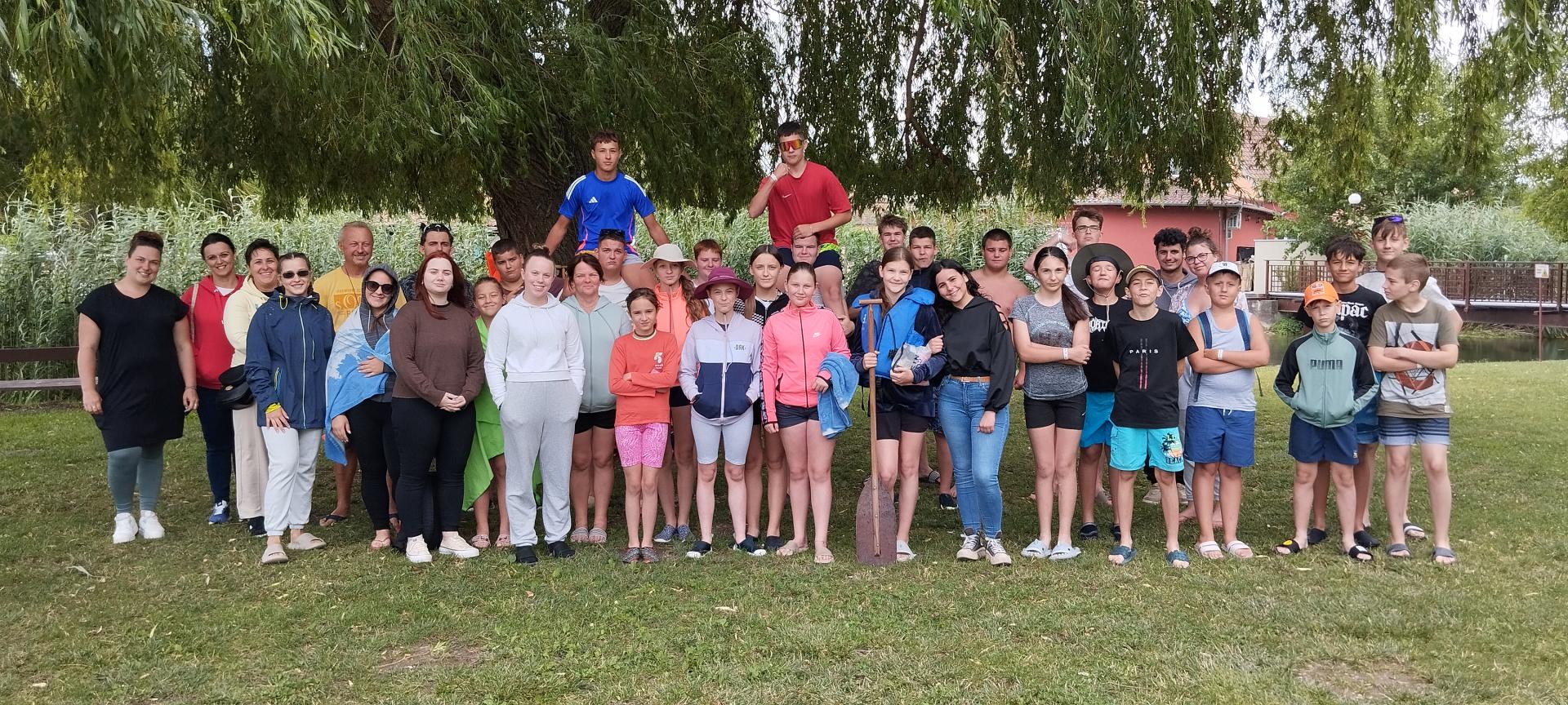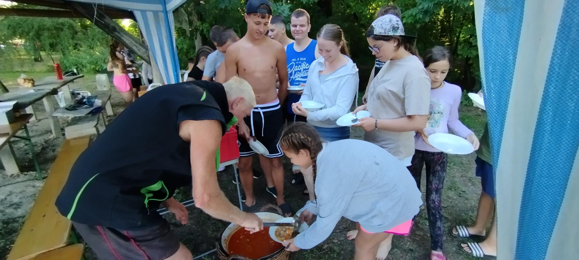 Tanulóink felügyelet mellett szinte minden nap, amikor az időjárás is engedte fürödhettek a kempinghez tartozó Duna szakaszon.