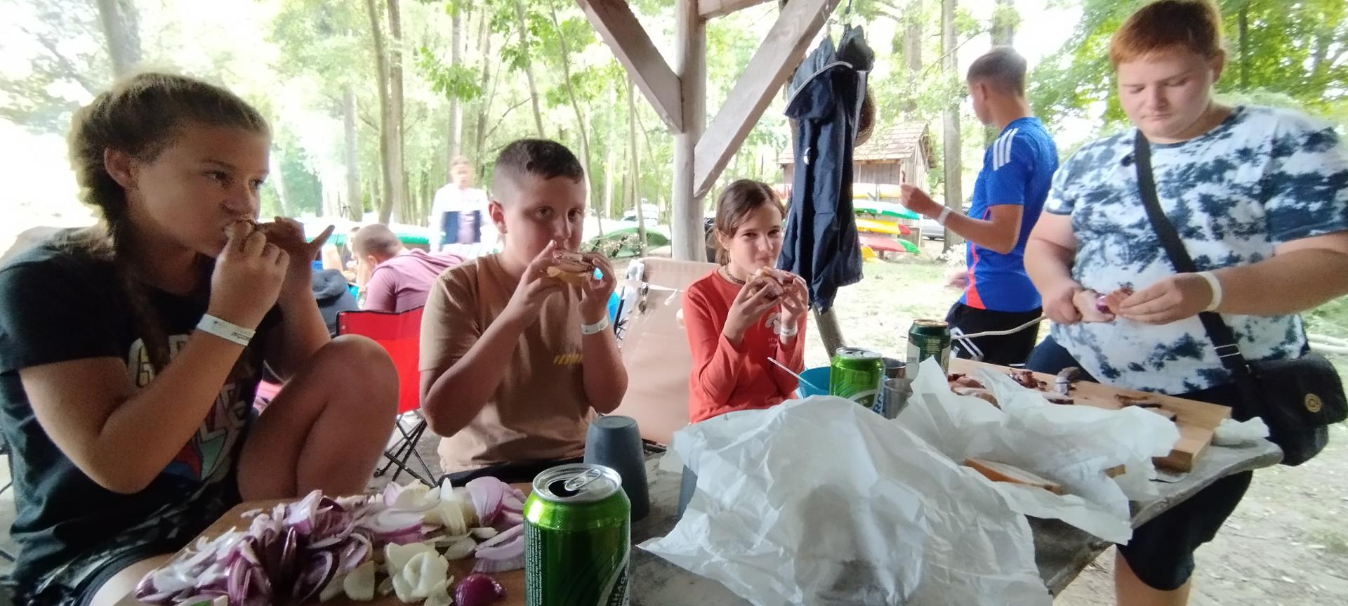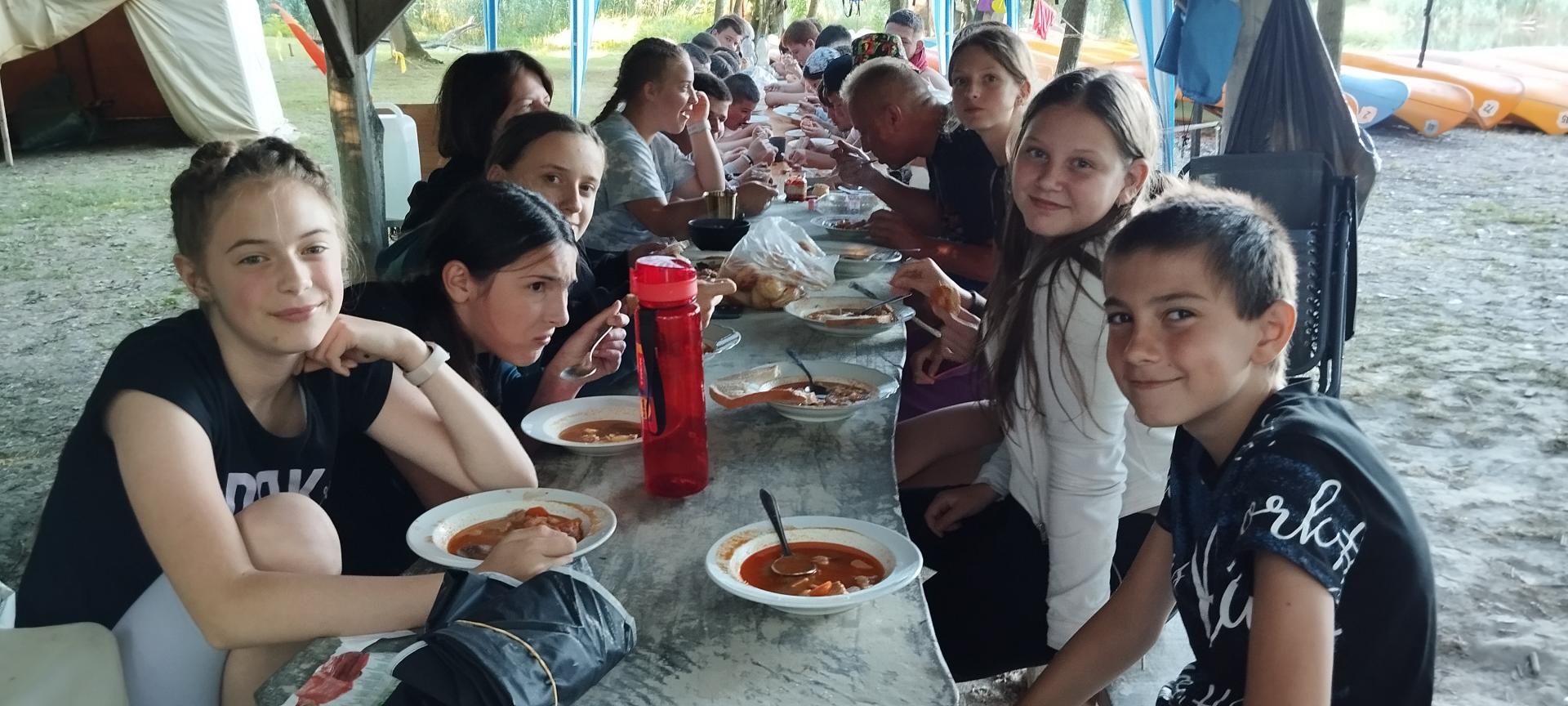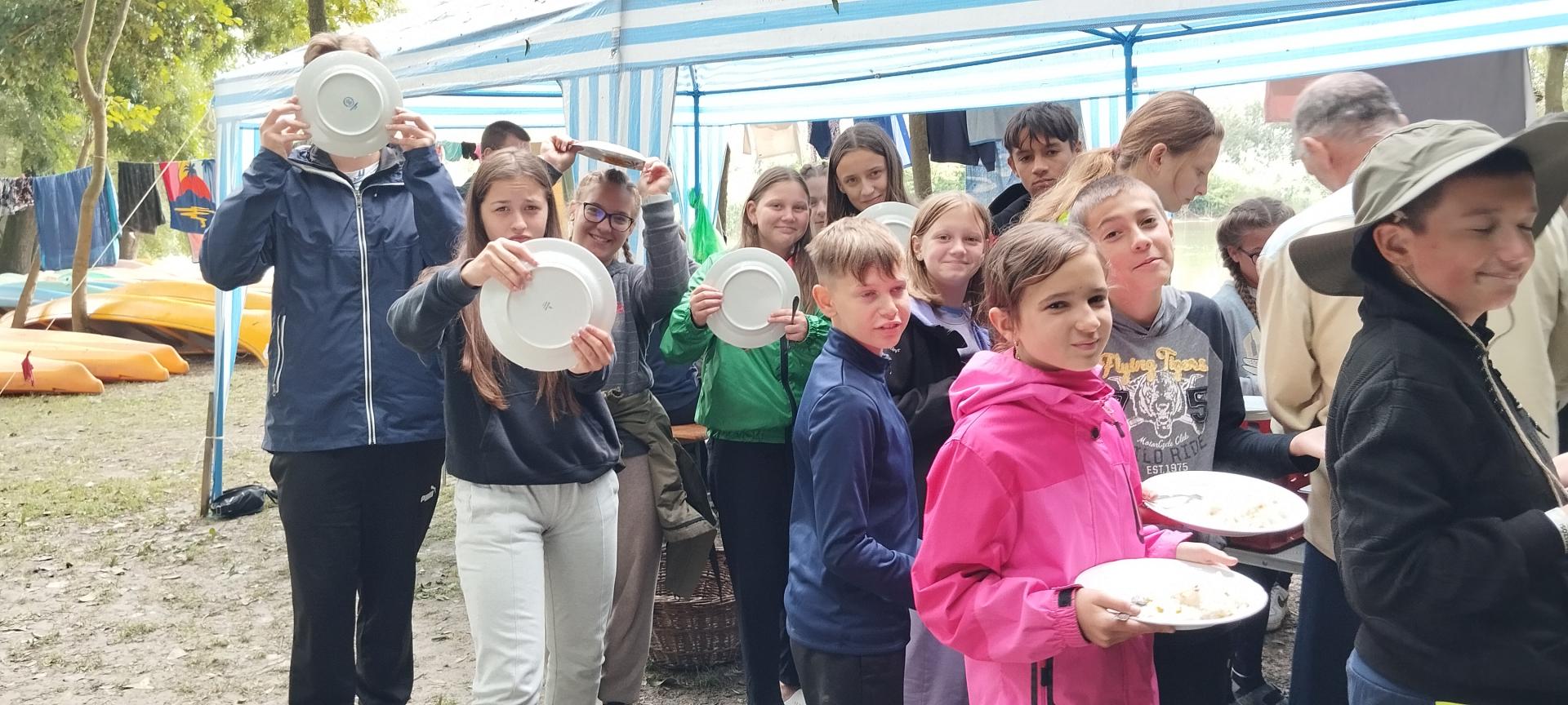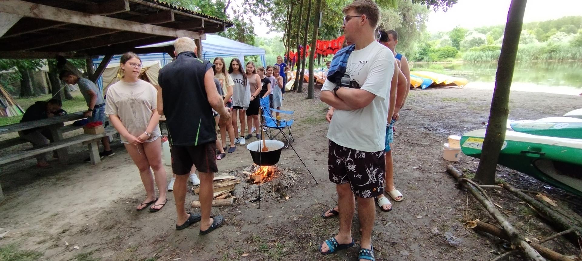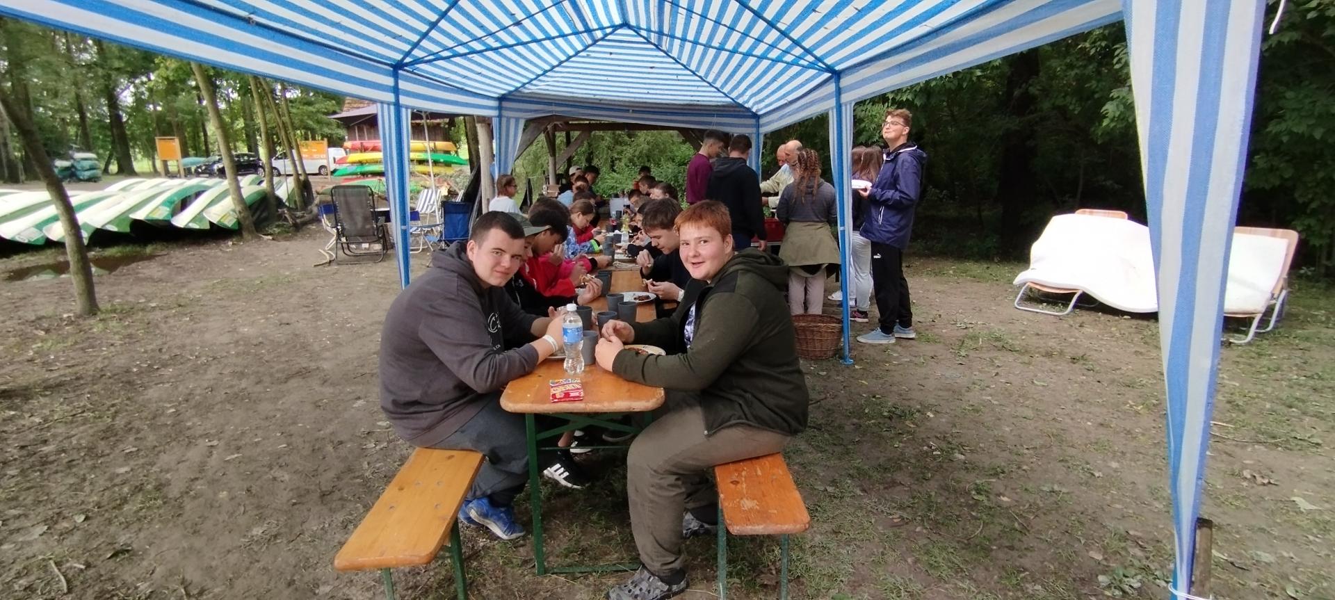 Tanulóink felügyelet mellett szinte minden nap, amikor az időjárás is engedte fürödhettek a kempinghez tartozó Duna szakaszon.