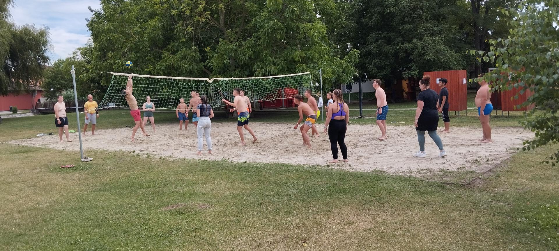 Csütörtökön eleveztünk Doborgazszigetre, ahonnan gyalog mentünk a Zátonyi szabad strandra, amelyen a kevésbé fázós diákjaink fürödhettek, a többiek röplabdázhattak és pihenhettek.