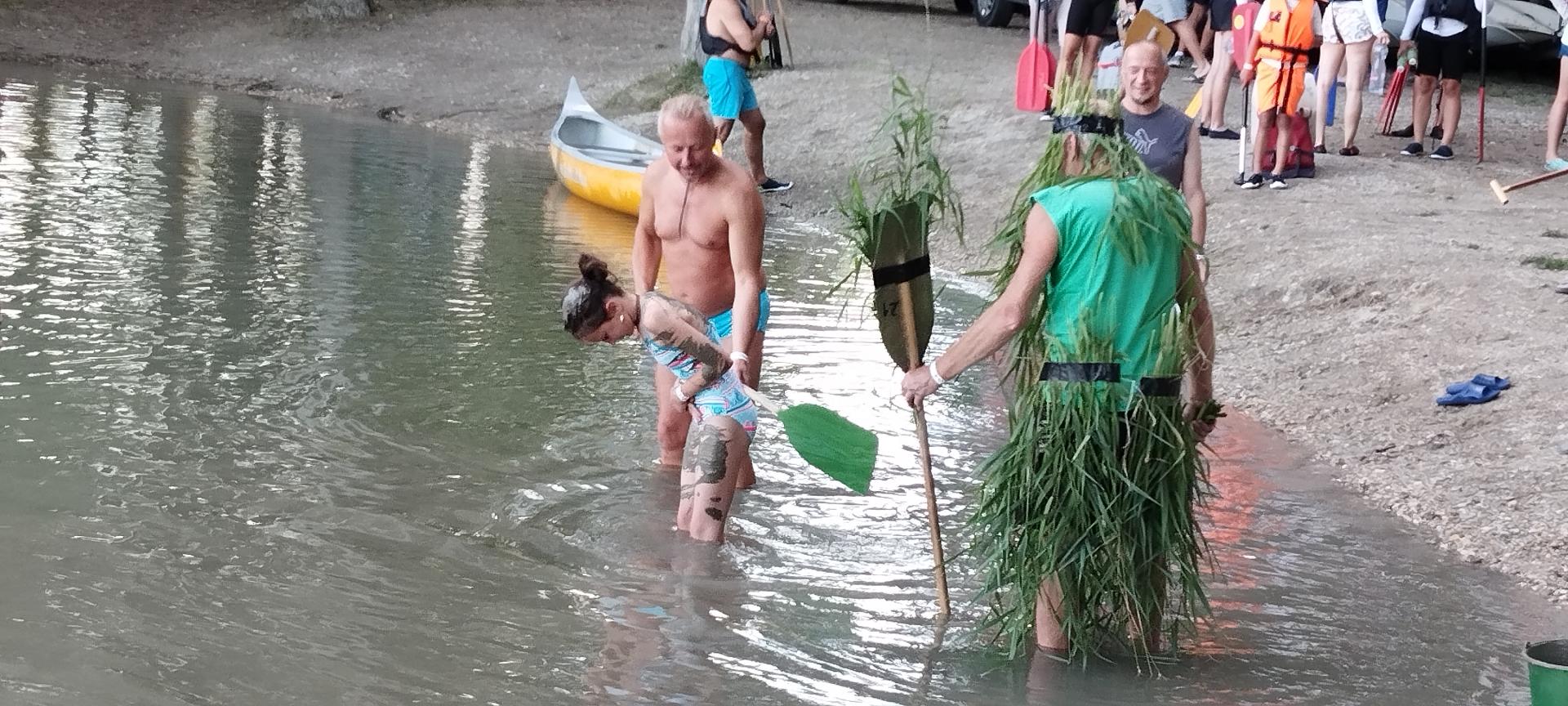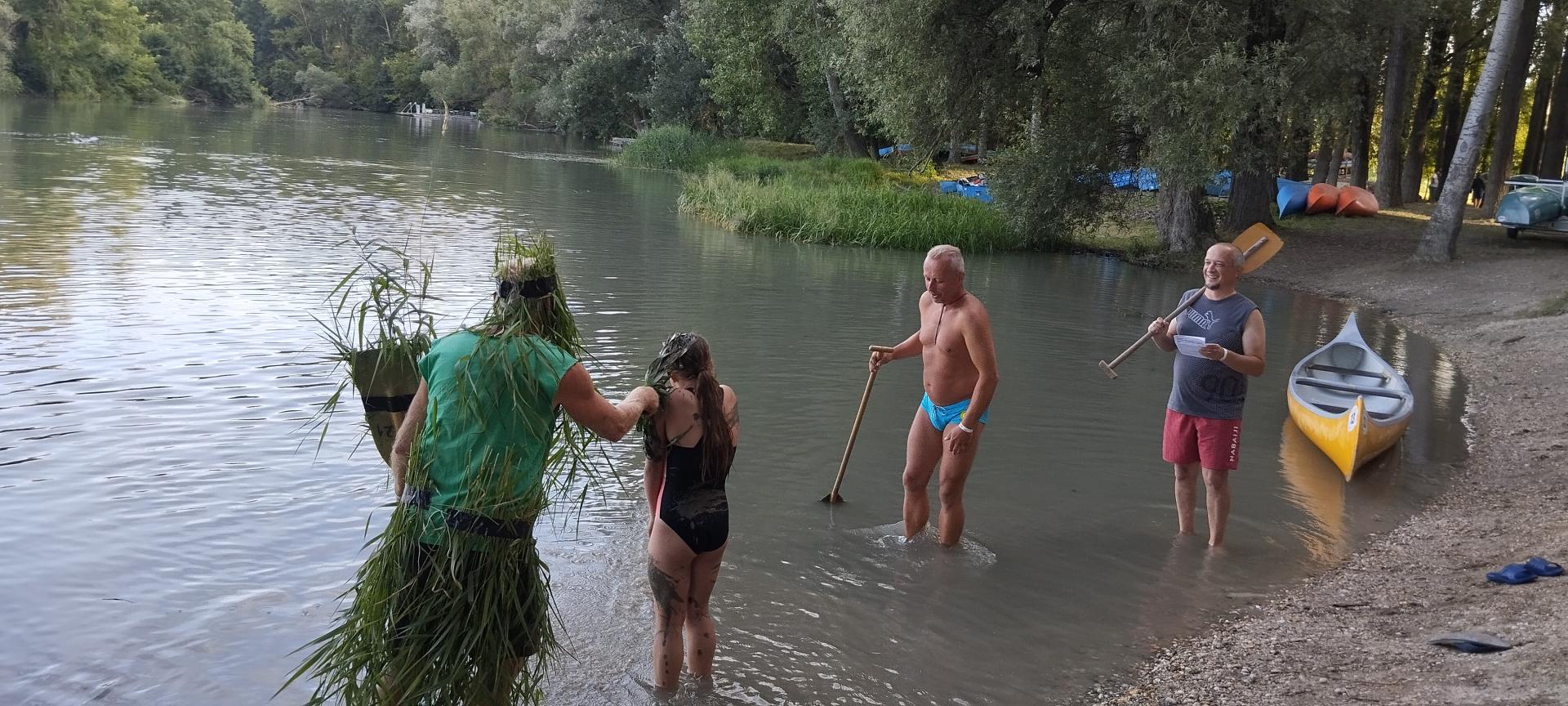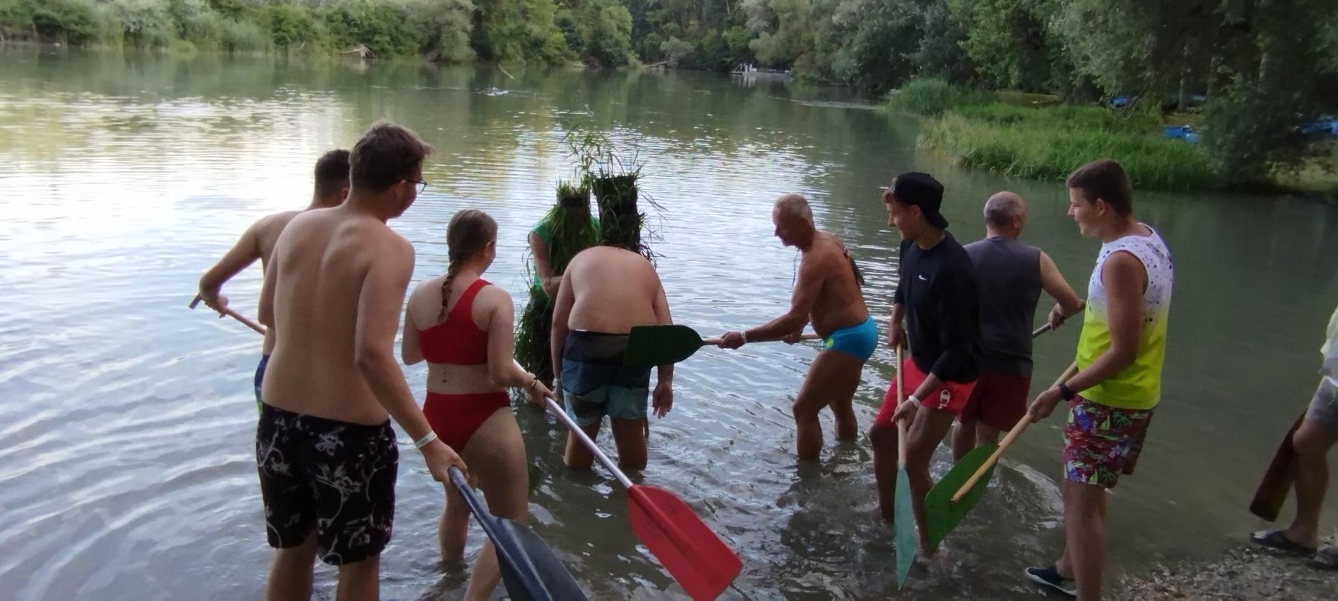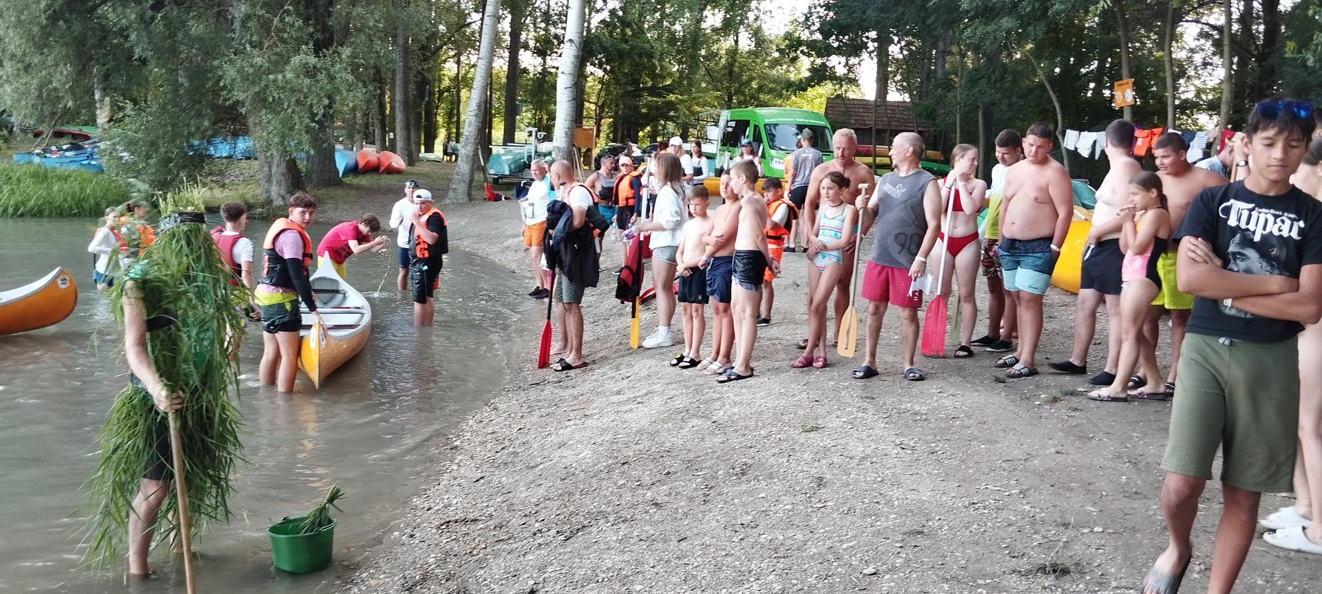 A tábor utolsó estéjén régi hajós hagyomány szerint felavattuk az újdonsült evezősöket, első evezőst és kormányost.