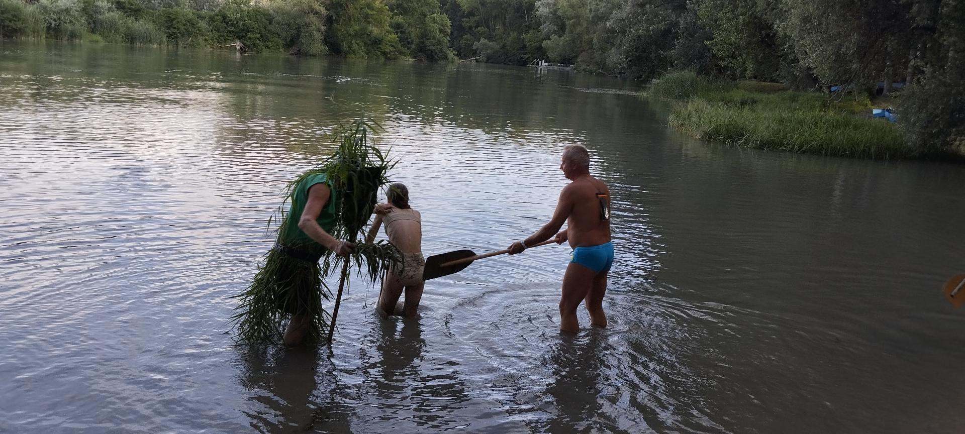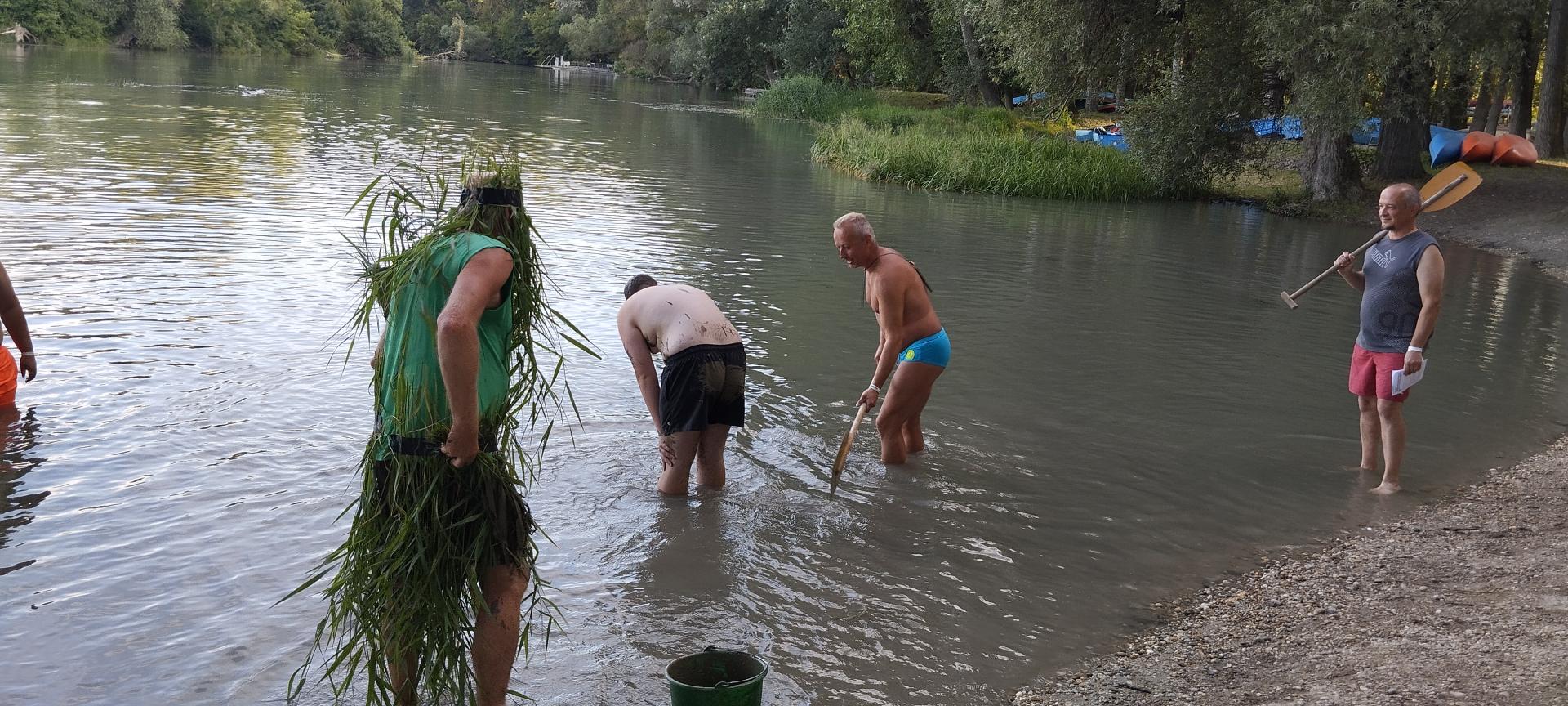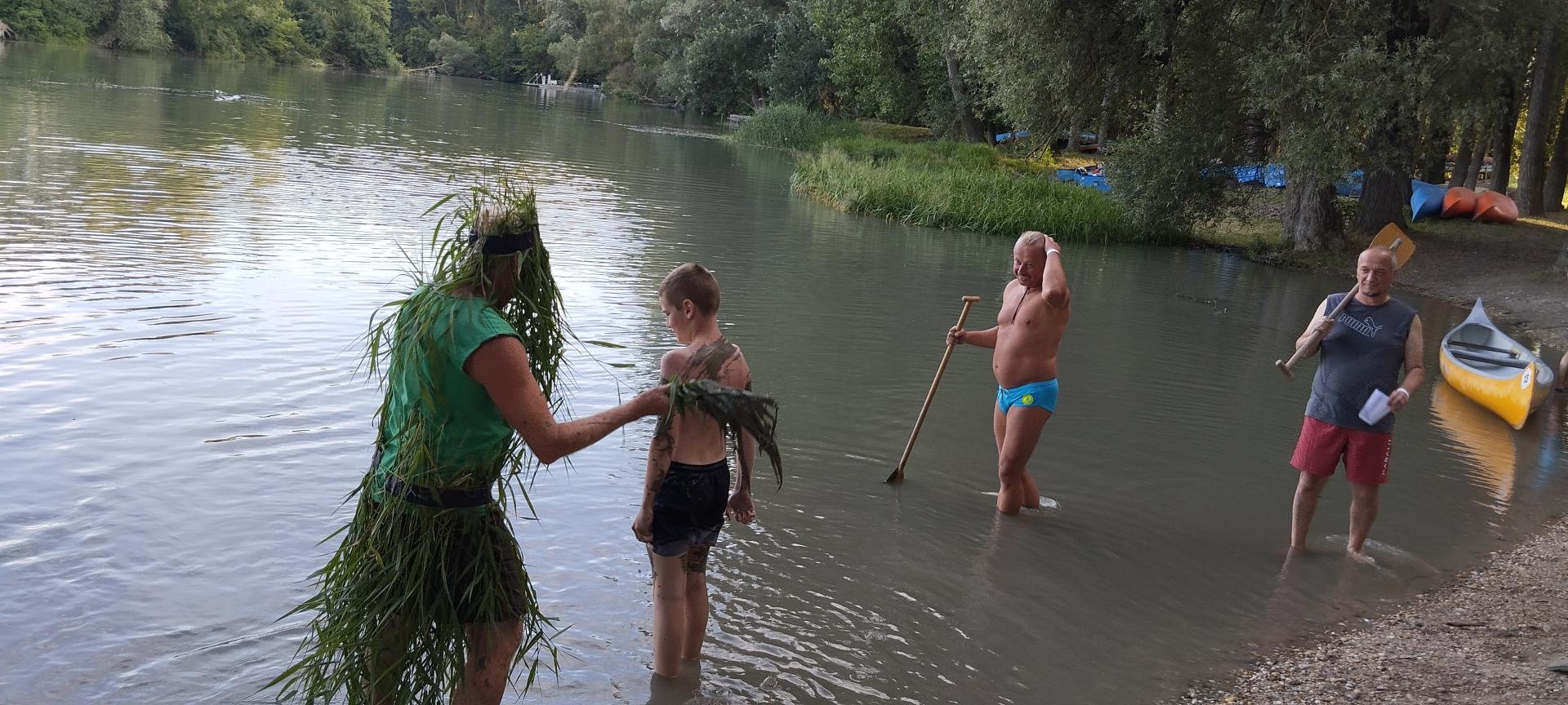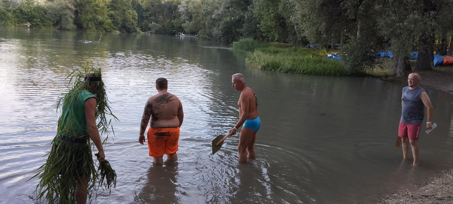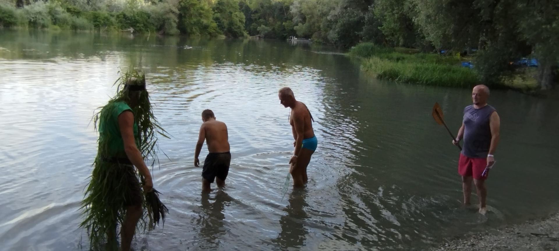 A tábor utolsó estéjén régi hajós hagyomány szerint felavattuk az újdonsült evezősöket, első evezőst és kormányost.