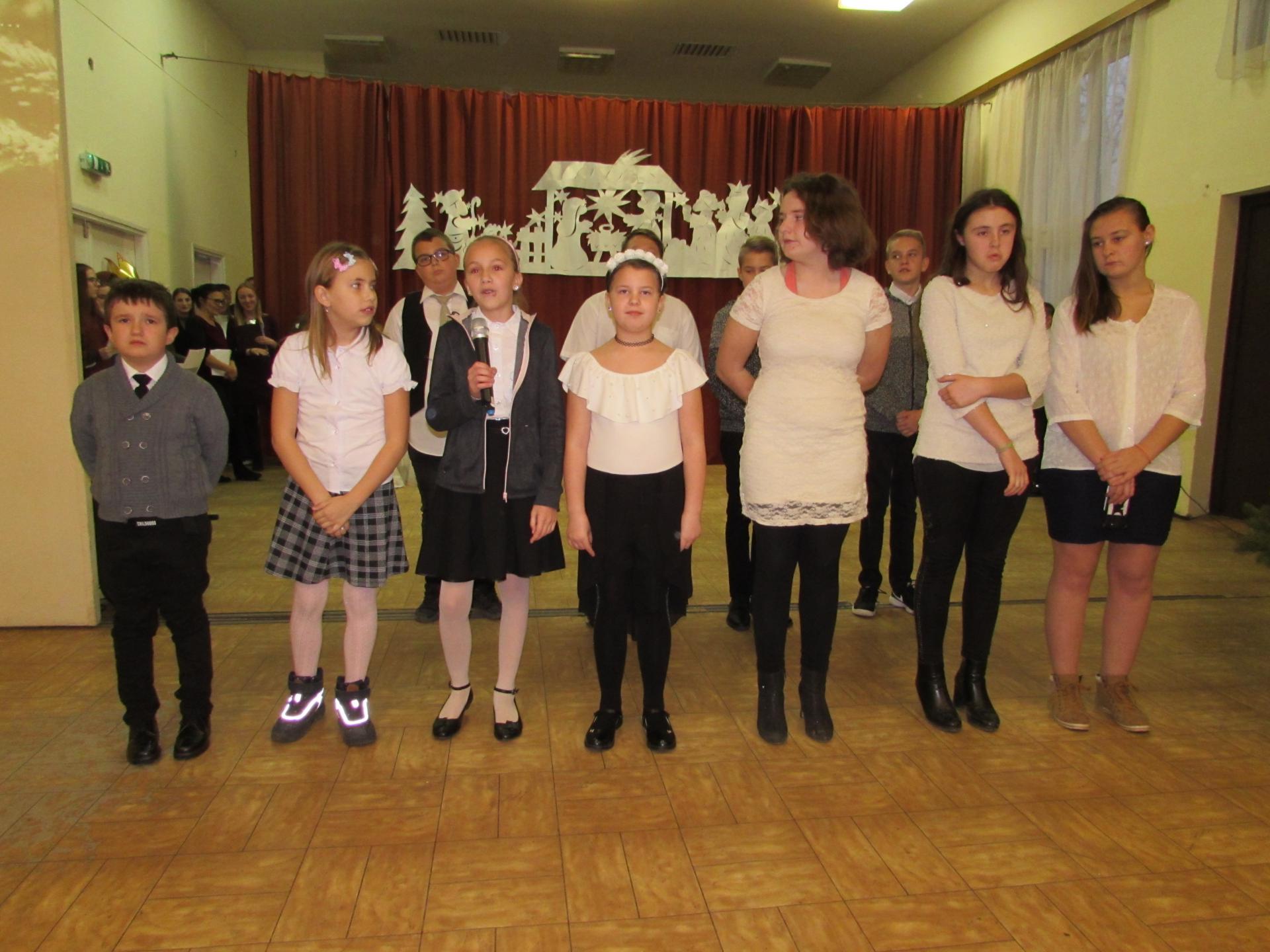 Ám a lelkünket is készítettük. Rövid verseket szavaltunk a falu adventi koszorújának gyertyagyújtásain. A hétfői áhítatok egyre jobban nyitották fülünket, szívünket, hogy meghalljuk, a lényegre kell koncentrálni. Egyre több dalt énekeltünk, hiszen a zene felfelé emeli a lelket. Volt tánc és öröm, finom falatok a manó-bál keretében. És a tanórák. Igen, ezeken is ott volt a karácsony. Karácsonyi versek, zenék, énekek, történetek, szokások, hagyományok. Még a törtek összeadása is jobban „ízlik” ha karácsonyi tortaszeleteken szemléltetjük. A háttérben pedig folytak a próbák. Készültünk az ünnepi karácsonyi műsorra. Olvasópróba, énekes próba, alsós próba, felsős próba, összpróba, terem próba, templomi próba. Szépet akartunk, meghatót, és lélekemelőt.