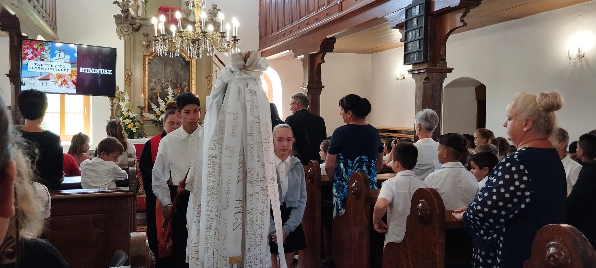 Tíz órakor tanévnyitó Istentiszteletre került sor az Evangélikus Templomban, ahol Németh Kitti bobai és Steindl-Papp Judit szombathelyi iskolalelkészek szóltak hozzánk. Az istentiszteleten sor került beiktatásokra is sor tanári tisztségekbe.