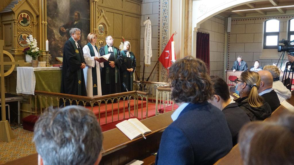 Az ünnepi istentiszteleten Gregersen-Labossa György, a Diakóniai Bizottság elnöke hirdette Isten igéjét. Elnök úr beiktatta lelkészi szolgálatába Menyesné Uram Zsuzsannát, a SZEDIK diakóniai lelkészét, aki ezt követően az intézmény vezetőjét, Szabó Miklóst iktatta be hivatalába. Az intézmény dolgozói az oltár előtt áldásban részesültek.
