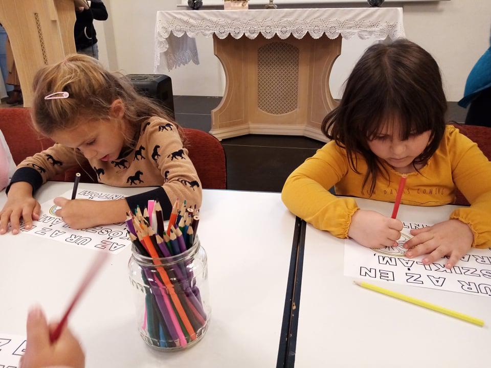 Ismét óvodás-kisiskolás foglalkozást tartottunk a családi istentisztelet ideje alatt a kápolnában.