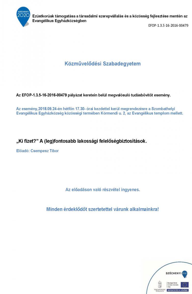 2018-09-21 A közművelődési szabadegyetem előadásai idén is folytatódnak egy pályázatnak köszönhetően. Az előadás időpontjairól folyamatosan hírt adunk: