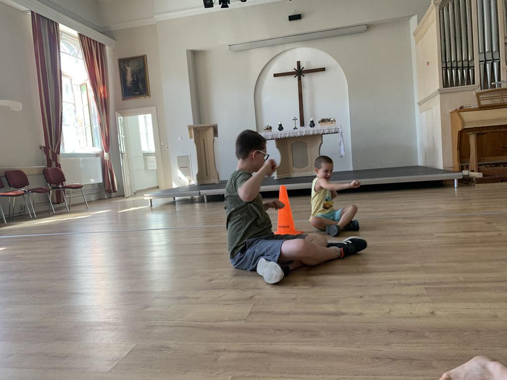 A Szombathelyi Evangélikus Egyházközség területén zajlott július elején a Gyermekszárny, játékos mozgásfejlesztő tábor Gregersen-Labossa Ágnes vezetésével.