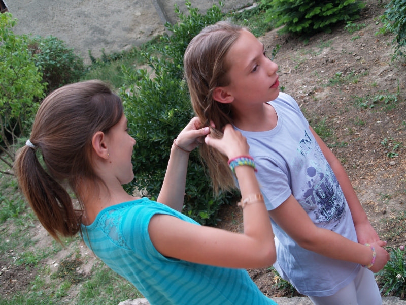 Sok beszélgetéssel, játékkal, tánccal és énekléssel telt a hittan tábor második napjának délelőttje. Ebéd után egy kis sportolás következett, majd a csoportok együtt mentek át Ági néniékhez, ahol megnézhettük, hogyan gondozzák a kertet, játszottunk, tűzet raktunk és sütögettünk is. Ez idő alatt a konfirmandusok az őszi konfirmációi vizsgára készültek.
