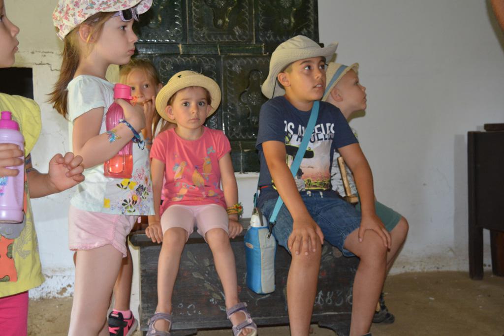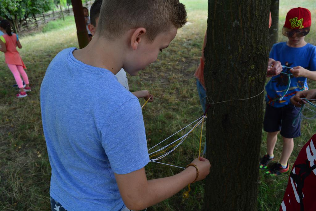 Szerdán a napindító áhítatot már a Múzeumfaluban tartottuk, miután a Skanzen Felsőszölnöki házában kialakítottuk a napi bázisunkat. A táborozók délelőtt a különböző házakkal, régi bútorokkal és eszközökkel ismerkedhettek, és könyvjelzőt is készíthettek. Az ebédünk is helyben készült: gulyásleves és langalló volt a napi menü. Délután kötélverés, körmönfonás és madárles volt a programok között. Természetesen ezen a napon sem maradhattak el a labdajátékok sem, sőt, a hely adottságait kihasználva, még egy békés végkimenetelű harcra is sor kerülhetett. Igazán szép napot töltöttünk a Skanzenben, ahol szebbnél szebb karkötők és könyvjelzők is készültek.