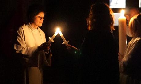 Az istentisztelet elején felhangzó ószövetségi olvasmányok a sötét templomban szólaltak meg, majd a húsvéti gyertya megérkezésével halvány fény töltötte meg Isten házát. A fény a feltámadott Jézust hirdeti. Napkeletkor már lélekben együtt lehettünk azokkal, akik először hallották az örömhírt.