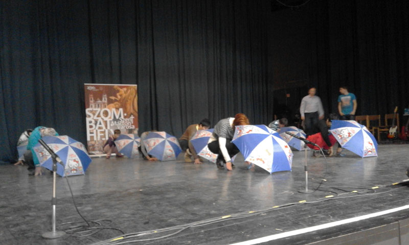 Igaz a próbák alatt néhány esernyő széttörött,de mosolyogva,lelkesen készültünk tovább az előadásra. Már délelőtt a főpróbán kellett megjelenni, a gála 14 órakor kezdődött és este hatig tartott. A hosszú,fárasztó nap ellenére mindenki nagyon vidáman, kitartóan élvezte a programot. És a fellépés nagyon jól sikerült,végig tapssal jutalmazta a mosolygós előadást a közönség.