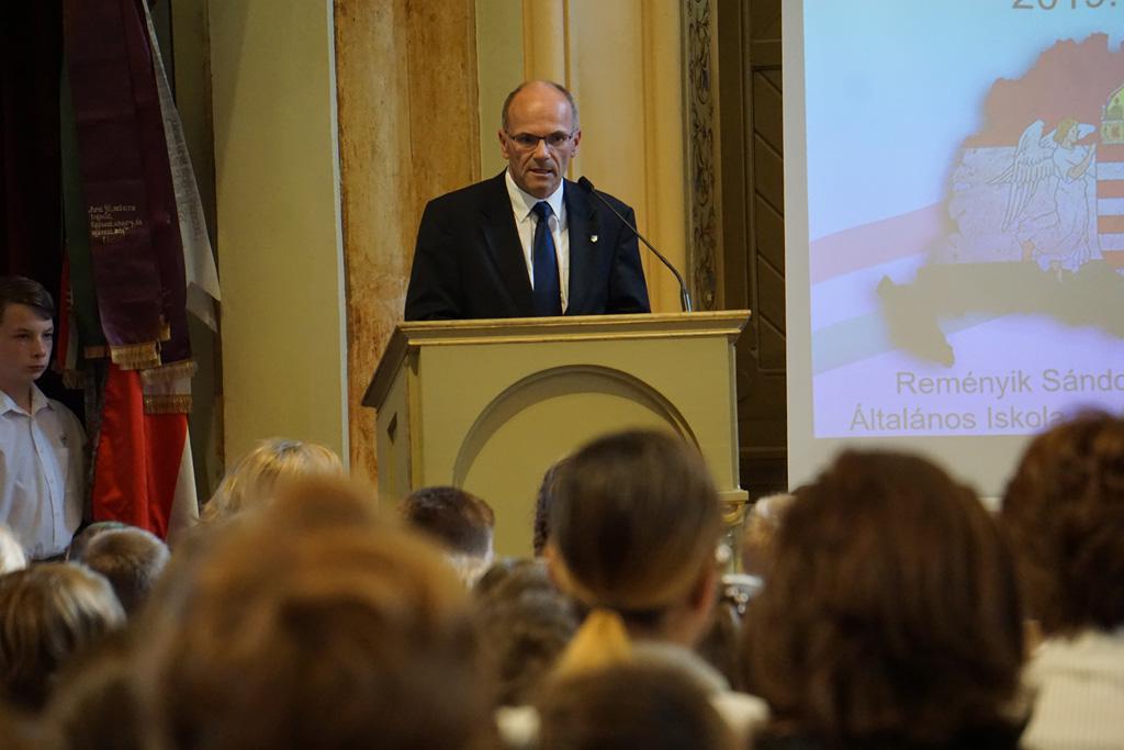 Az ünnepi istentisztelet keretében elsőként Sátory Károly, a Reményik-iskola igazgatója köszöntötte az intézmény tanulóit, s a megjelent vendégeket, majd Puskás Tivadar, Szombathely város polgármestere mondott beszédet. Együtt ünnepeltek iskolánkkal a perbetei alapiskola diákjai, akik versekkel, énekkel tették színesebbé a megemlékezést. Dalos Tibor történelem tanár rendhagyó történelem óra keretében foglalta össze a trianoni békediktátumot megelőző és az azt követő eseményeket, majd az iskolai énekkar előadását hallhattuk. Az ünnepség végén koszorút helyeztek el kishuszárjaink az első világháborús emléktáblánál.