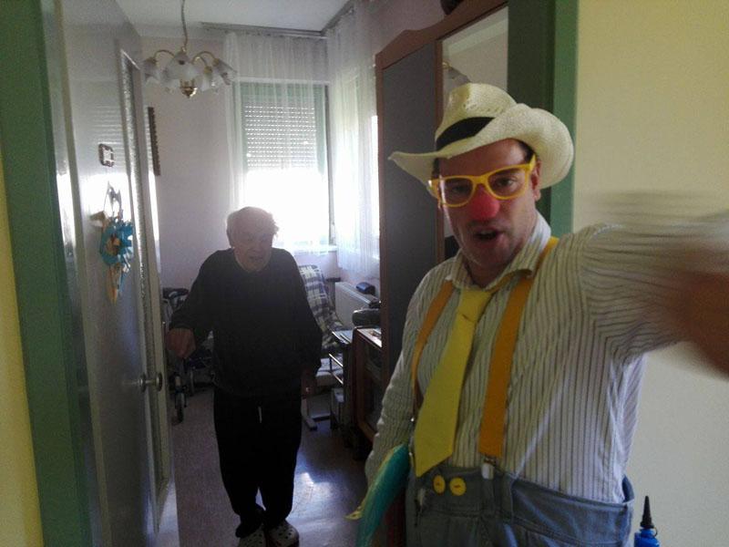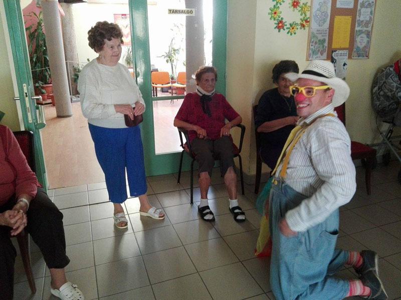 Vass Szilárd, a Dr. Bohóc Mosolyszolgálat vezetője volt a fő kolompos, sorra kérte fel a hölgyeket, menjenek hozzá feleségül. Az idősek partnerek voltak a bohóckodásban, nagyon vidám órát töltöttek együtt az alkalmi orvosokkal, akik énekeltek, szappanbuborékot fújtak, lufit hajtogattak és labdáztak is a lakókkal.
