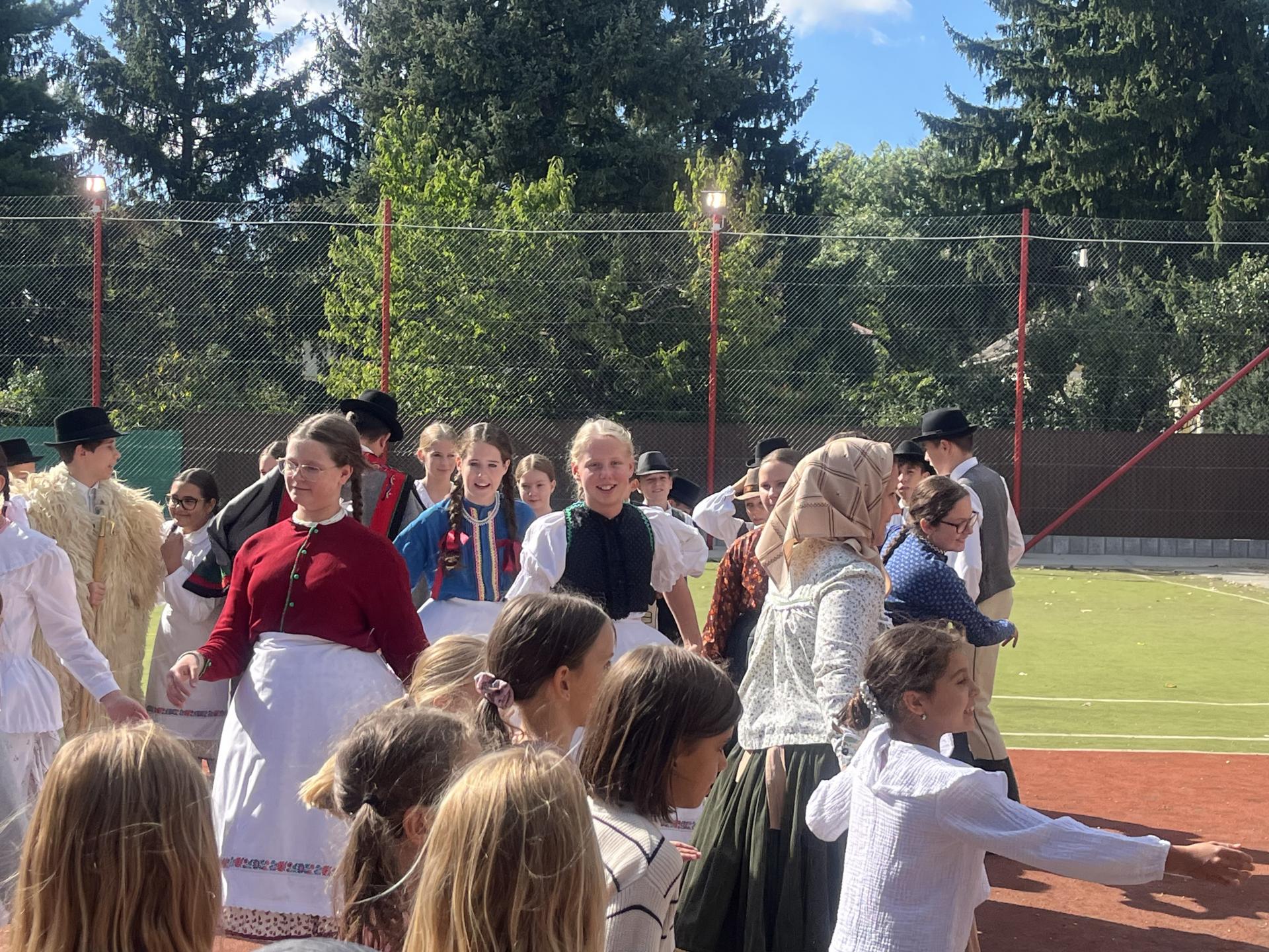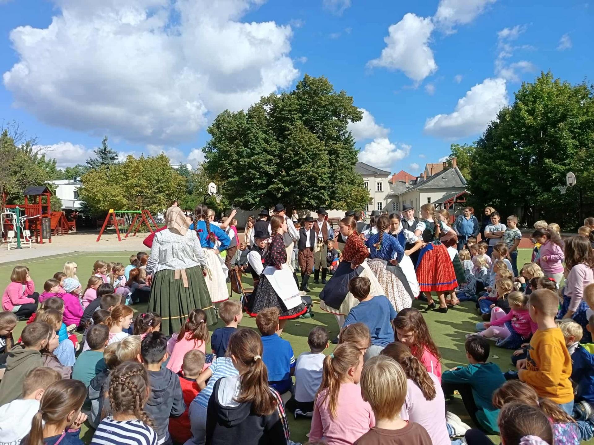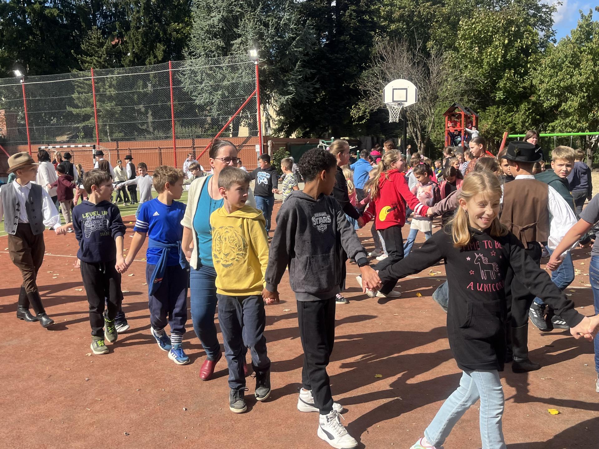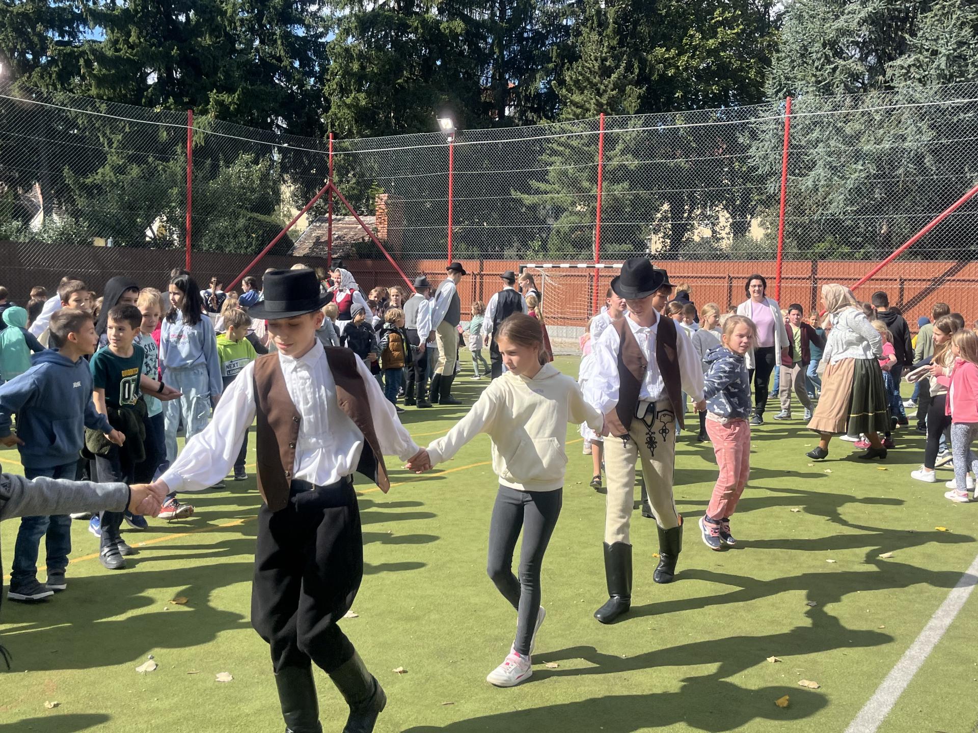 Iskolánkban már hagyománnyá vált, hogy A Magyar Népmese Napját egy szívvel-lélekkel megünnepeljük. Így volt ez idén is, amikor szeptember 29-én (hétfőn) Mihály-napjával egybekötött mesenapot tartottunk. Molnár Péter dudájának szavára minden alsós összesereglett a pályánkon, ahol Fekete-Tóth Bianka, Kővári Réka, valamint néptáncosaink segítségével együtt táncoltunk, pásztor énekeket énekeltünk.