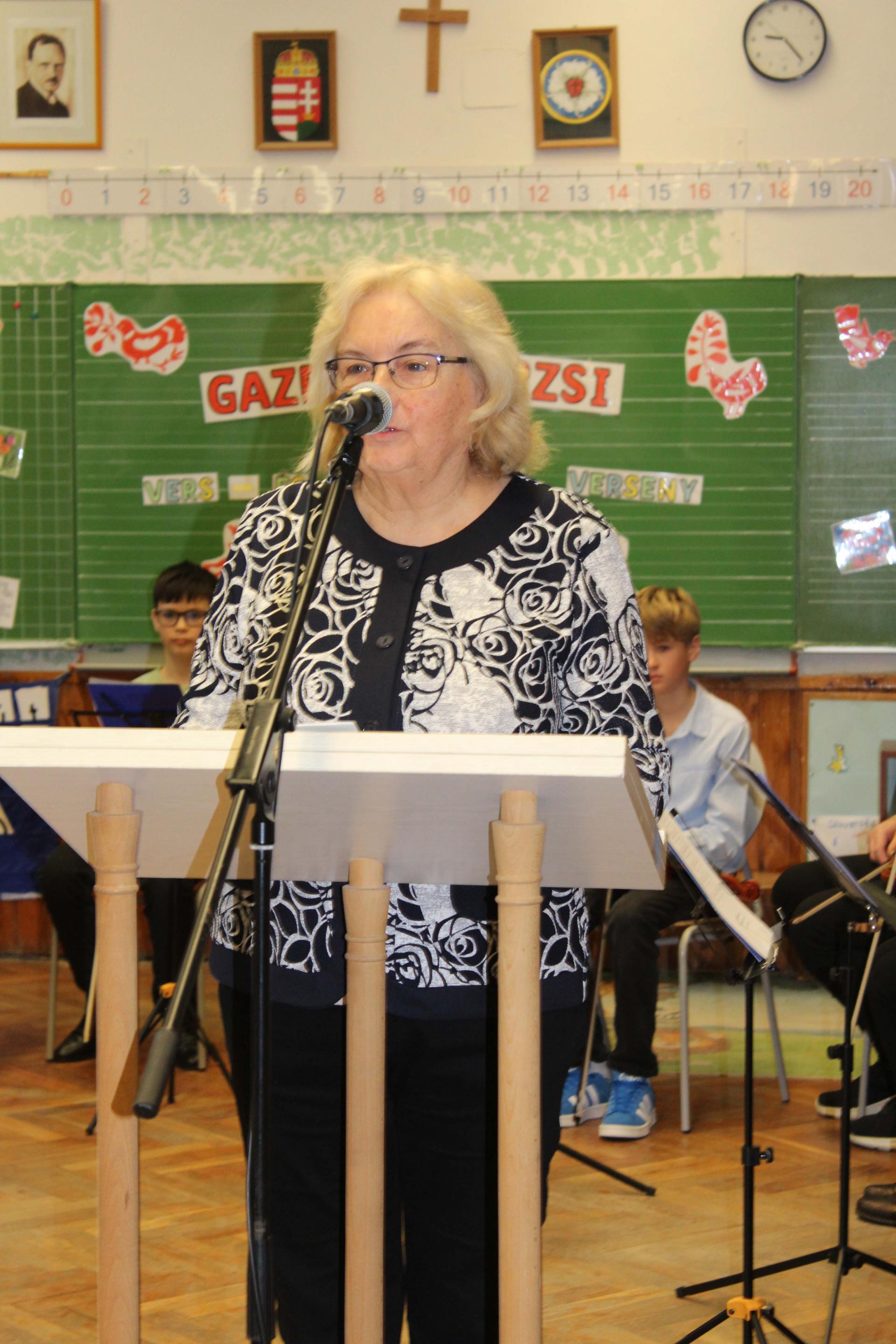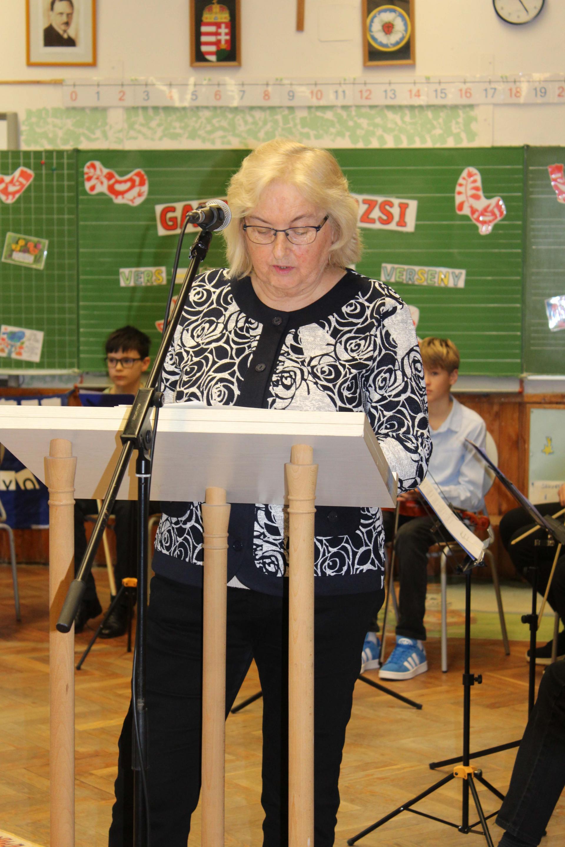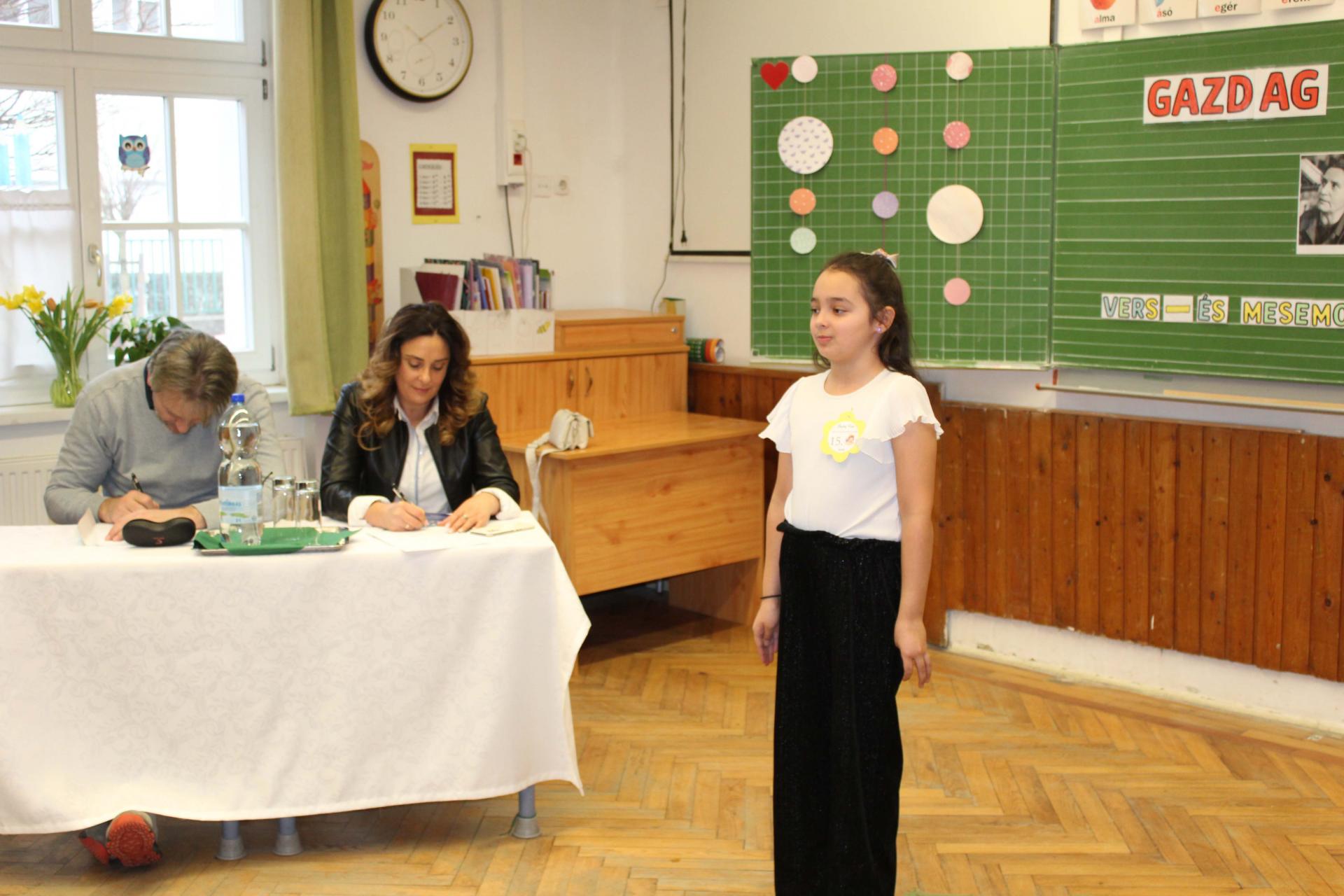 A versenyzők két szabadon választott művel készültek, amelyek közül az egyiknek Gazdag Erzsi alkotásának kellett lennie. A szavalatokat rangos zsűri értékelte: az óvodásokat Szabó Imréné Edit drámapedagógus, Vörös Ágnes, iskolánk nyugalmazott pedagógusa és Csákvári Gyöngyi pedagógus hallgatta meg. Az 1–2. osztályosok produkcióit Bálint Éva és Horváth Ákos, a Weöres Sándor Színház színművészei pontozták, míg a 3–4. osztályos versenyzőket Kinezics Helga, a Nagy Lajos Gimnázium magyar szakos tanára, valamint Németh Gyöngyi, a Weöres Sándor Színház színházpedagógusa értékelte.
