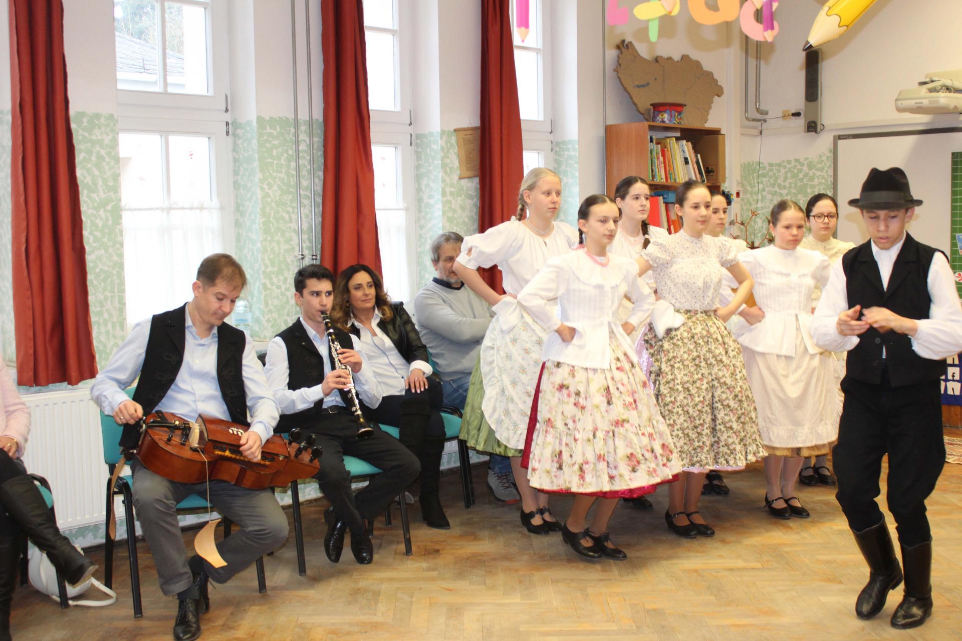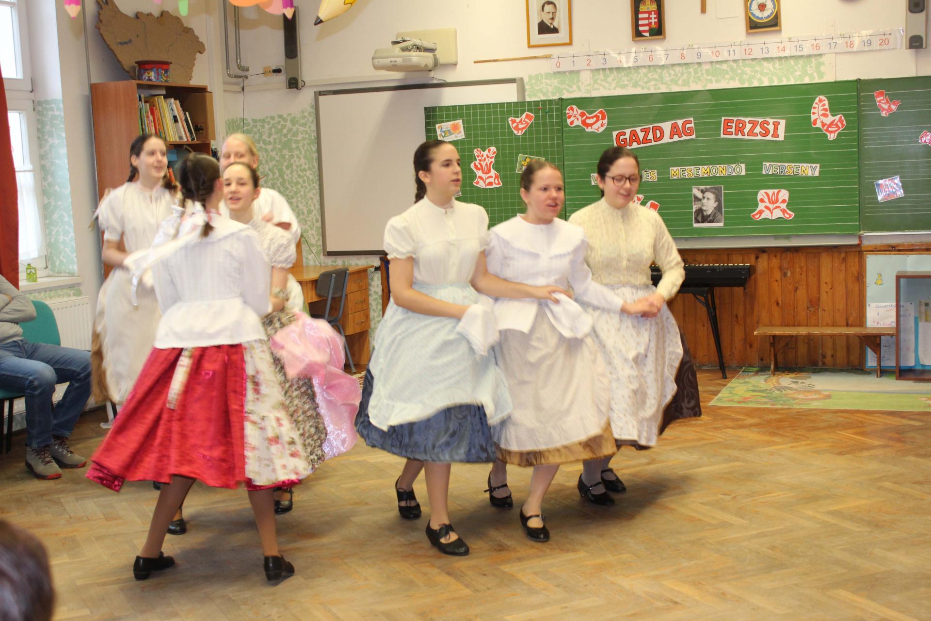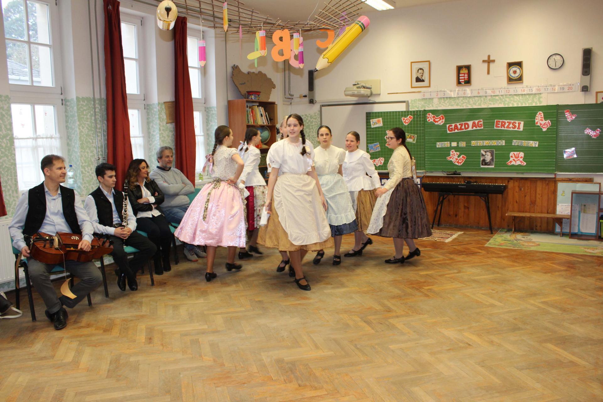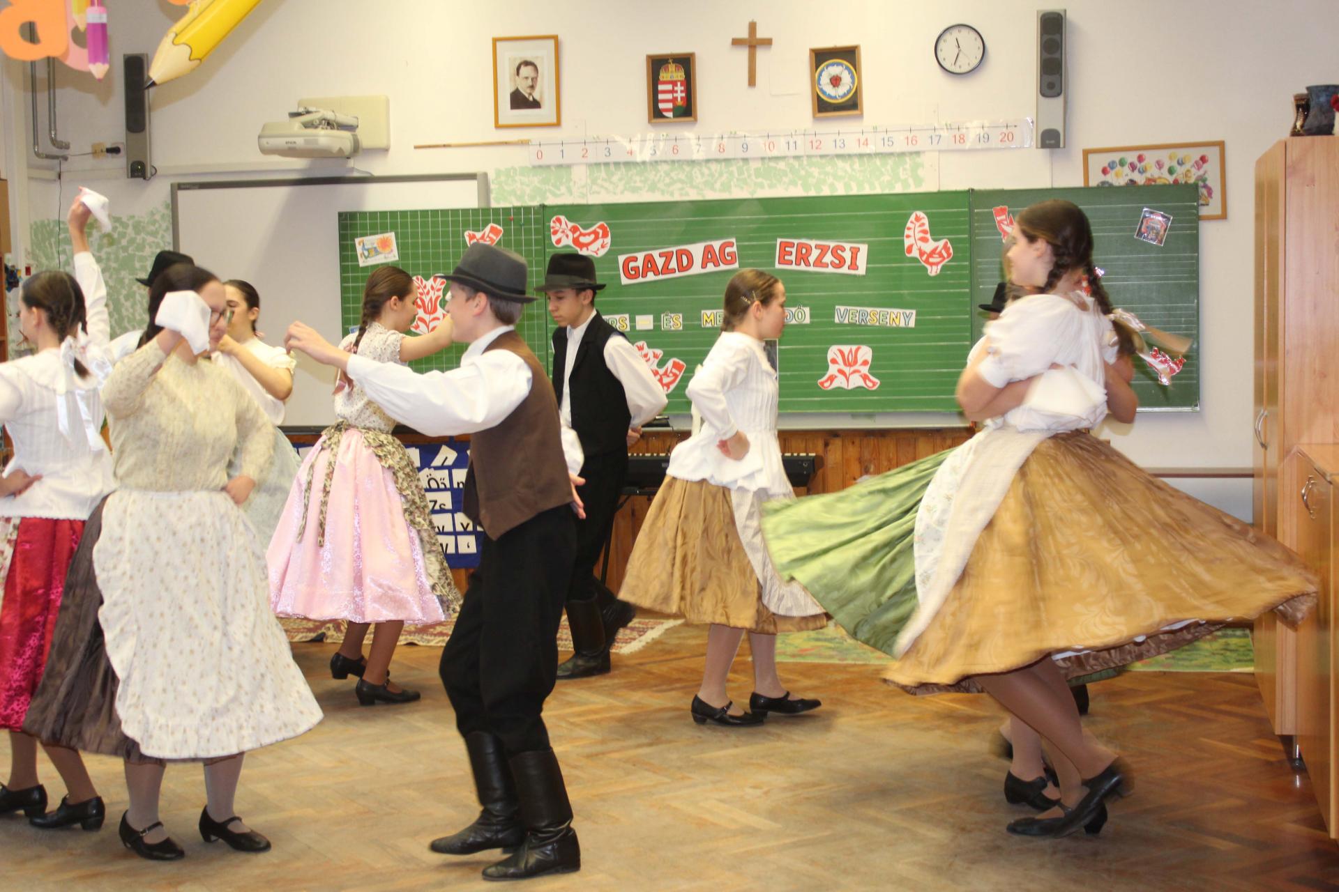 A rendezvényünket néptánccal is színesítettük: iskolánk Berbécs Néptánccsoportja a „Tyuhaj, sarkam, add föl a talpam!” című összeállítással vidám perceket szerzett a közönségnek.