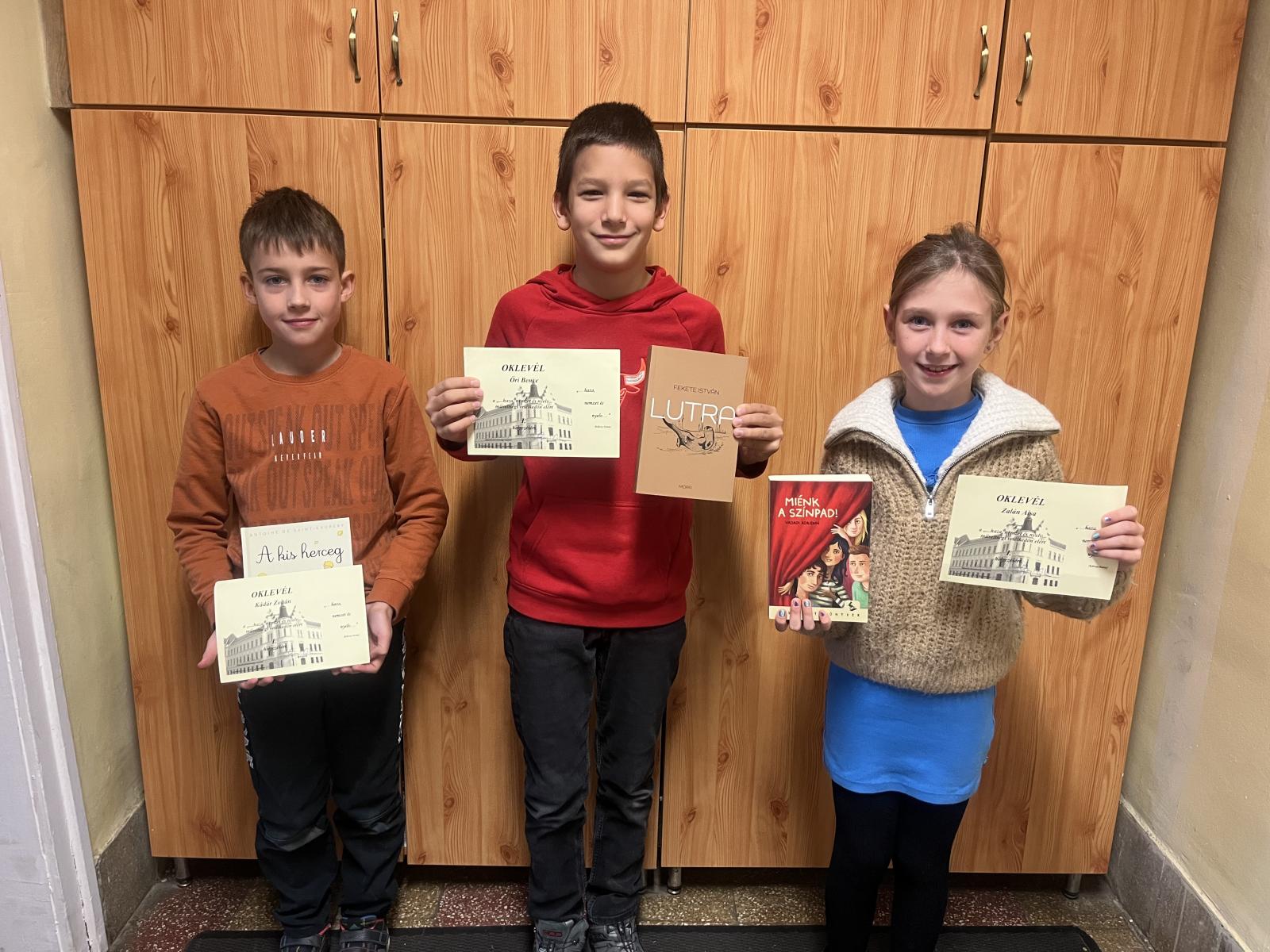Csapatunk 1. helyezést ért el! A tagok: Kádár Zoltán 4.b , Őri Bence 4.a, Zalán Aisa 4.b. Felkészítő: Mesterházy Csilla és Szabó-Ambrus Eszter tanítónők.