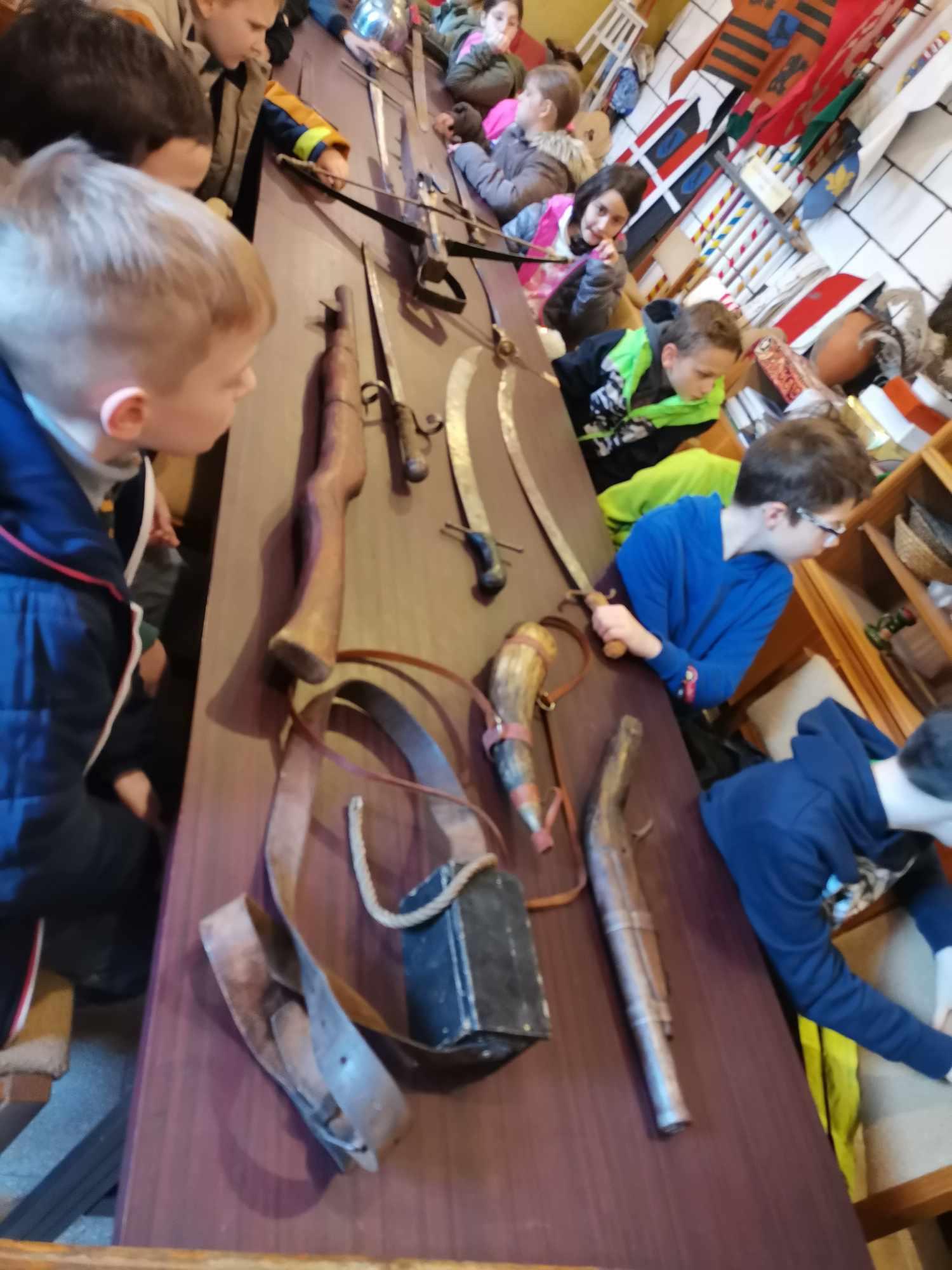 A Fekete Sereg Hagyományőrző Csoport tagjai korhű ruhákban fogadták a gyerekeket, és kezükbe adva a történelmet, bemutatták a kor eszközeit, fegyvereit, katonai ruházatát.