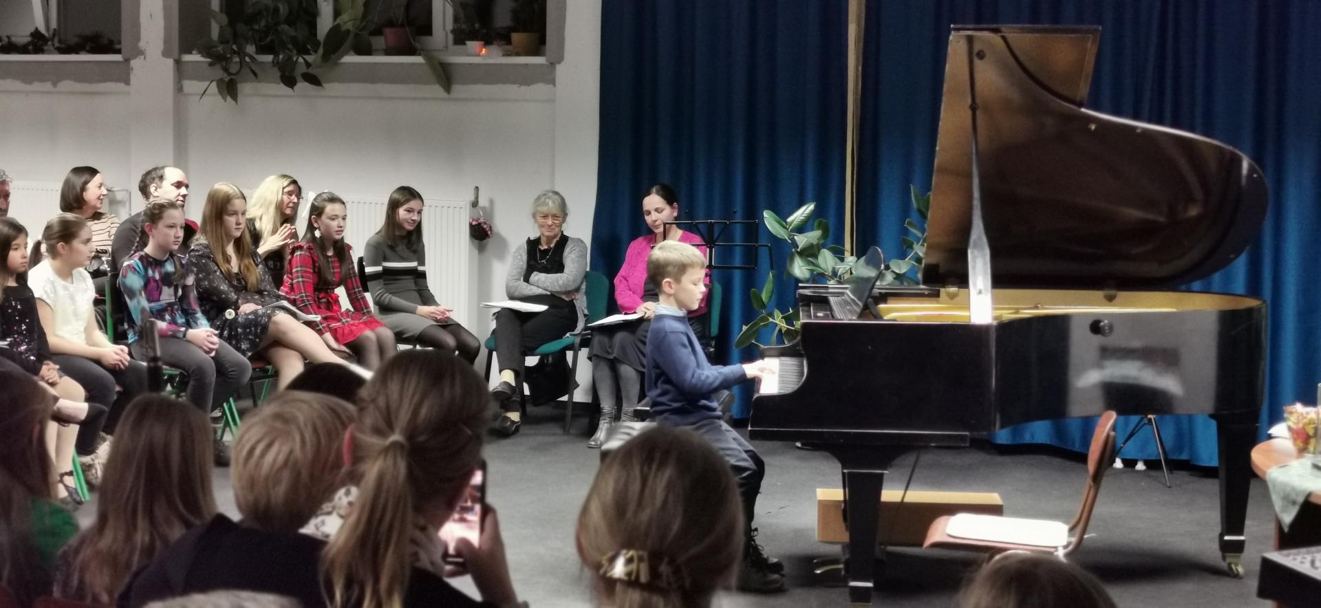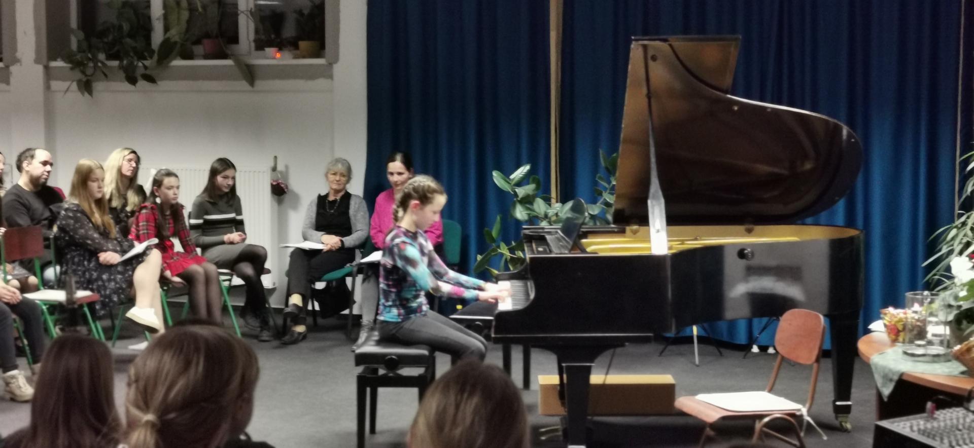 Iskolánk idei adventi növendékhangversenye is nagyszerűen sikerült. A kék szalon megtelt családokkal, akik kíváncsian várták, hogy meghallgassák a gyerekek játékát – sokan közülük most léptek fel először közönség előtt.