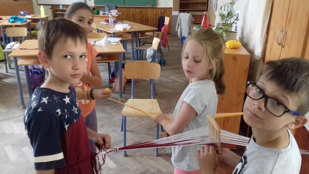 Másnap, szerdán a különböző foglalkozásokat ismerhették meg a gyerekek a délelőtt folyamán. Délután kézművesedtünk. Szőttünk, fontunk, gyöngyöt fűztünk, modellkedtünk.