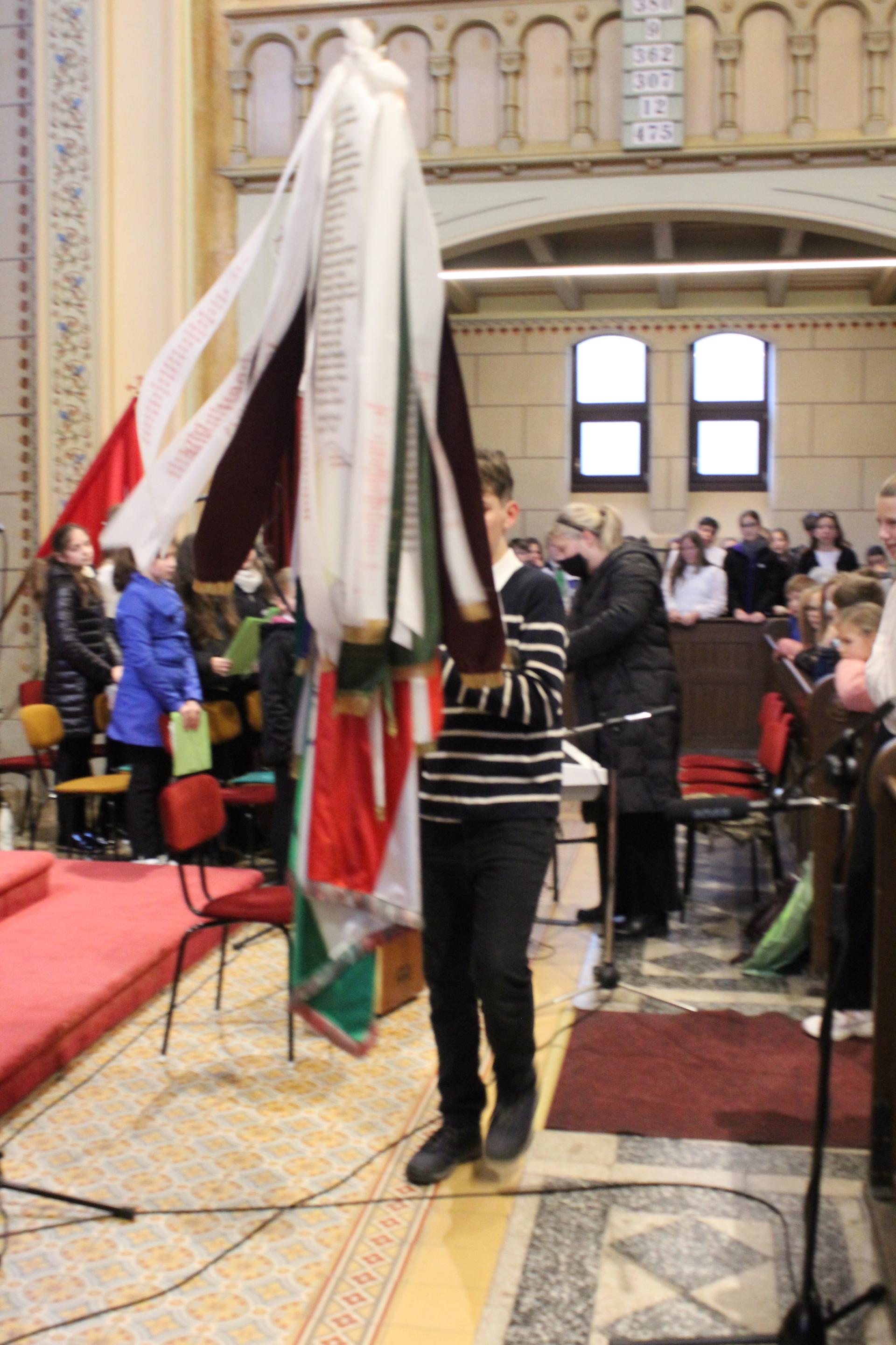 Hétfő reggel ünnepi hangulat lengte be a Szombathelyi Evangélikus Templomot, ahol iskolánk énekkara Bródy János: „Ha én rózsa volnék” című dalának meghitt előadásával nyitotta meg az 1956-os forradalom emlékére rendezett megemlékezést. A dal után Dalos Tibor történelemtanárunk egy rendhagyó, élményszerű tanóra keretében idézte fel a forradalom hősies és megrendítő eseményeit, felvillantva a kor eszméit, küzdelmeit és áldozatait. Az ünnepi műsort énekkarunk felemelő előadása zárta, amikor megszólalt az „Előre mind, pesti srácok” című dal – méltó, lélekemelő lezárásaként az emlékezésnek.