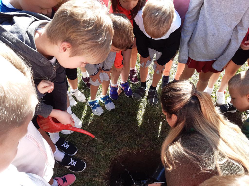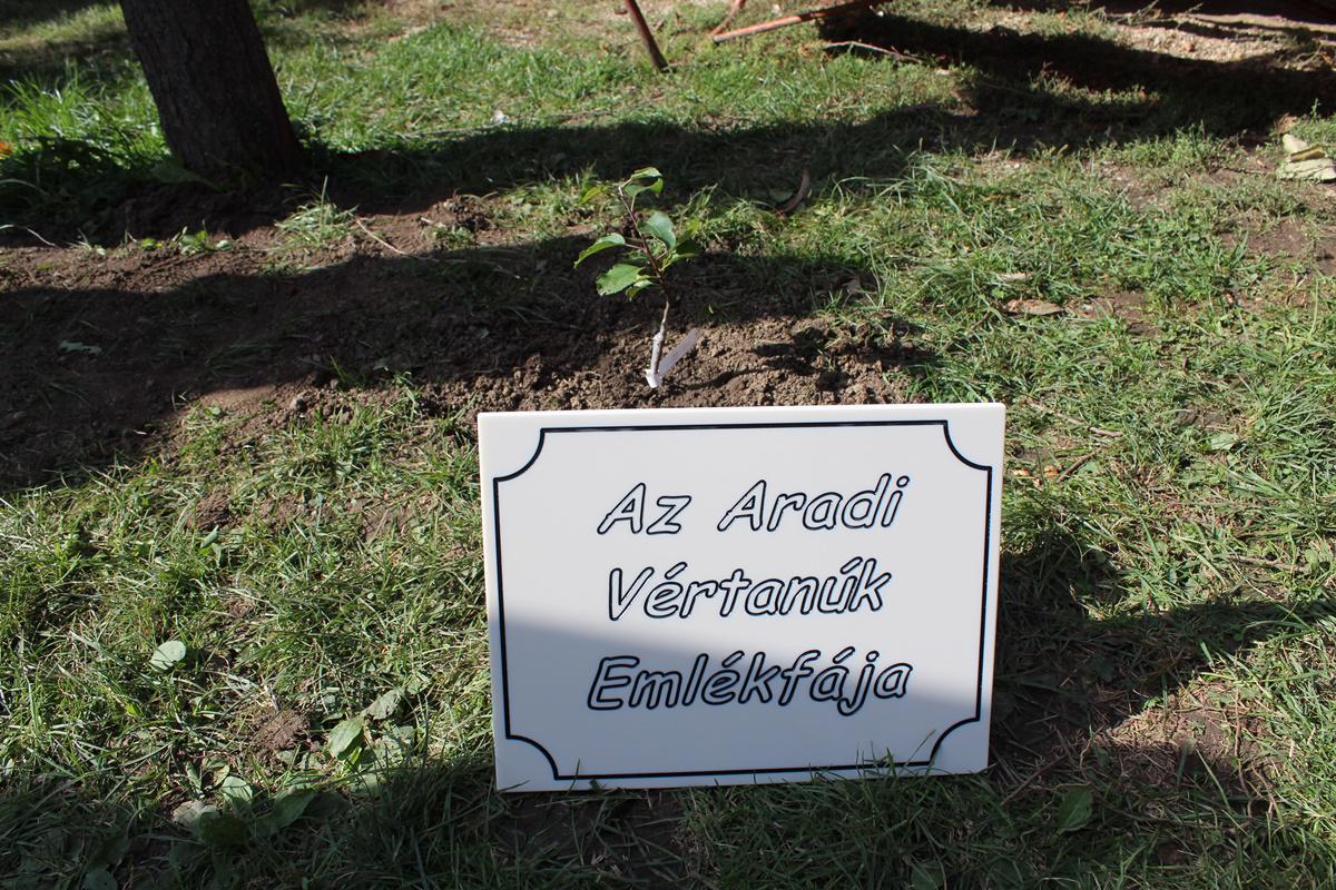 A fenntarthatósági témahét kapcsán pedig egy apró almafát ültettünk el iskolánk udvarán az aradi vértanúk tiszteletére. A fát az 1.b osztályosok helyezték a földbe, majd az 5. és 7. évfolyamosok megemlékeztek az aradi 13 hősi haláláról. A diákok azokat a verseket szavalták el, melyekkel a felvidéki kirándulásra készültek, majd Steindl-Papp Judit lelkésznő imádsággal és áldással zárta a rövid ünnepséget.