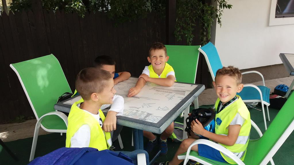 A lelkes kresz-es gyerekekkel délelőtt a kerékpározás alapszabályait néztük át, majd a gyakorlatban is kipróbáltuk ezeket. Délutáni pihenőt a Kalandvárosban töltöttük.