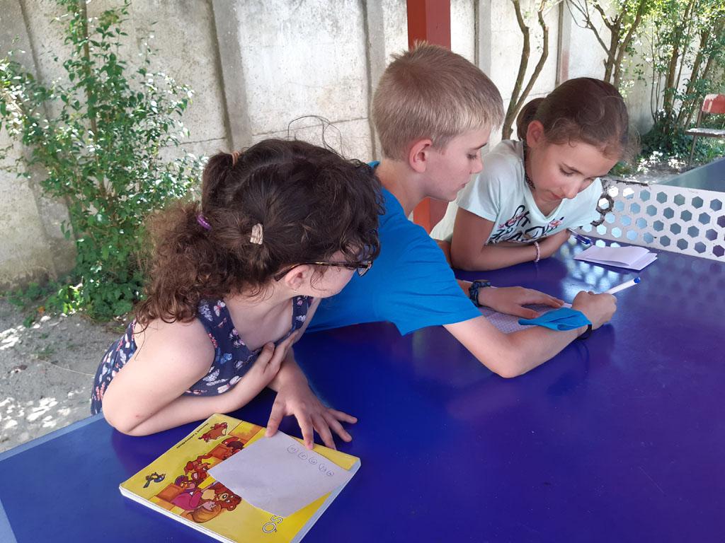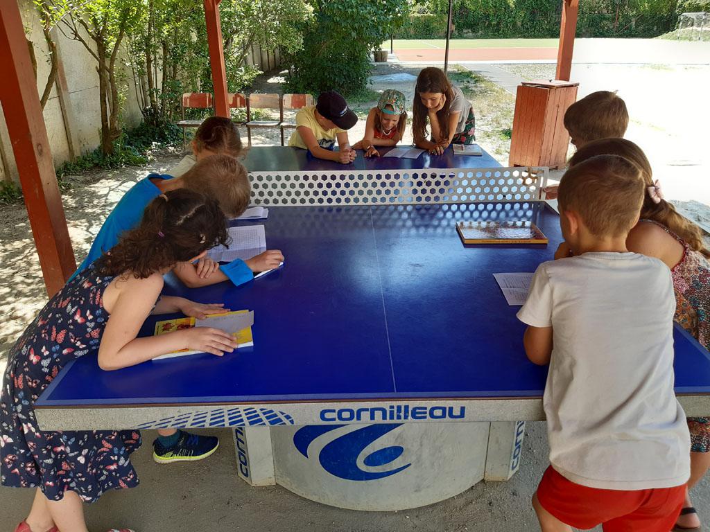 A mai délelőttöt a gyerekek a Csónakázó tónál töltötték, ahol az árnyas fák alatt igyekeztek játékos feladatokkal okoskodni, majd körbejárva a tavat az ottani élővilágot felfedezni. Délután akadályverseny következett, ahol lemérhették, hány lépcső vezet az iskolai könyvtárig, de azon is törhették a fejüket, milyen erdei állatneveket rejtenek a feladványok.