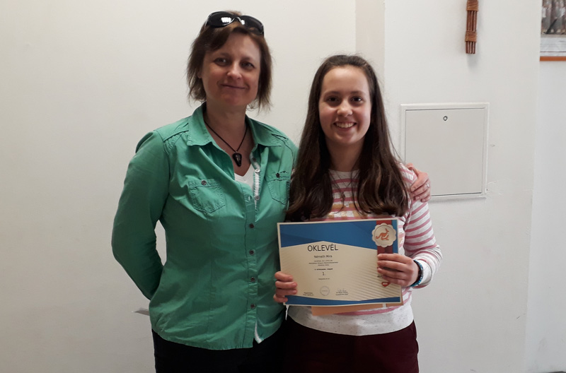 1. helyezett Németh Mira 6.a osztályos tanulónk, felkészítője: Németh Mónika