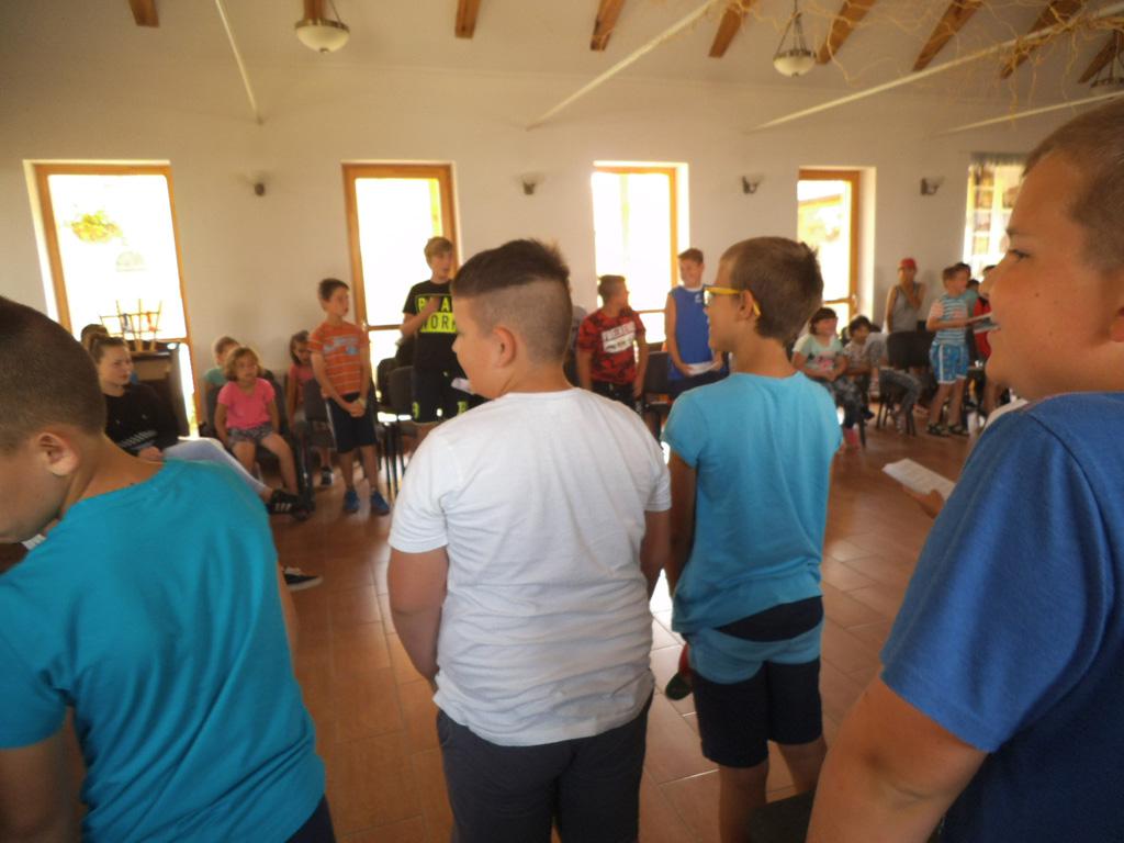 Hétfőtől péntekig 4 témakörben valósulnak meg a programok mind a két héten. 1.Önismeret, közösségépítés: „Mert nem az a fontos, amit lát az ember. Az ember azt nézi, ami a szeme előtt van, de az ÚR azt nézi, ami a szívben van.” /1Sám 16,7/ 2. Művészeti nevelés: „Keressetek hát nekem egy embert, aki szépen tud játszani a lanton, és hozzátok ide hozzám!” /1Sám 16,17/ 3. Sport: „ . . . azt mondta neked az ÚR, hogy kezedbe adja ellenségedet. Tégy vele, amit jónak látsz!” /1Sám 24,5a/ 4. Környezettudatosság: „Miért vetetted hát meg az ÚR szavát, miért tettél olyat, ami nem tetszik neki?!” /2 Sám 12,8b-9a/ A bőséges reggelit áhítat követi, majd a táborozók részére önismereti foglalkozás következik. Utána tízórai, majd 3 db 15 fős csoportban folytatódik a délelőtt forgószínpad szerűen. Közben természetesen szakítunk időt az ebédre egy kis játékos kikapcsolódásra. A nap végén röviden összefoglaljuk a tanultakat, hallottakat. Természetesen a hálaadó ima sem maradhat el. Hétfőn: Önismereti játékok segítségével a "Milyen vagyok?" kérdésre kerestük a választ. Kinder+Sport sorversenyek várták a gyerekeket. Megismerkedhettek a művészeti foglalkozás keretében a lyrával és sablon segítségével el is készíthették a saját hangszerüket. Újrahasznosítás és környezetünk szépítése kapcsán "fűmanót" készíthettek. De beszéljenek a hétfői foglalkozásokról a fotók.