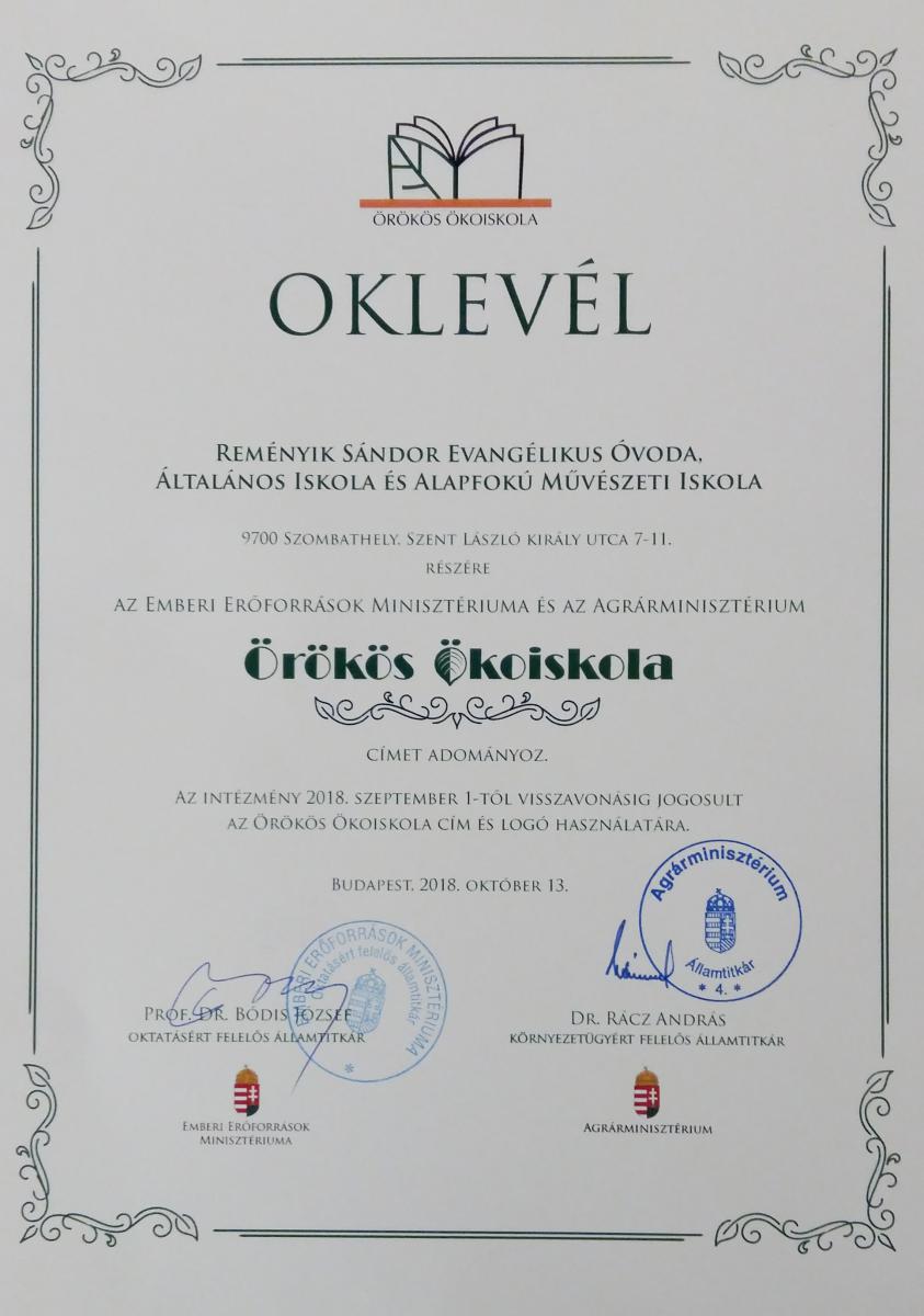 2018-10-25 Már korábban hírt adtunk róla, hogy iskolánk elnyerte az Örökös ÖKOiskola címet. Az erről szóló oklevelet nemrég személyesen vehette át Budapesten Schmallné Csákvári Gyöngyi tanárnő, az Ökosikola felelőse és programjaink szervezője.