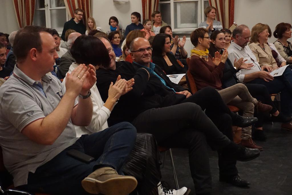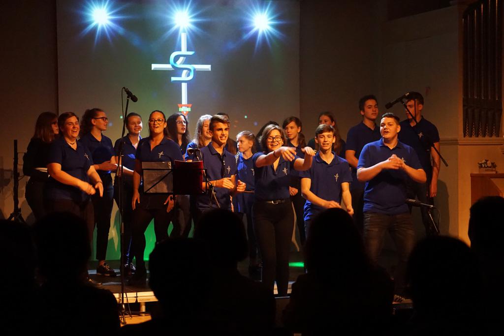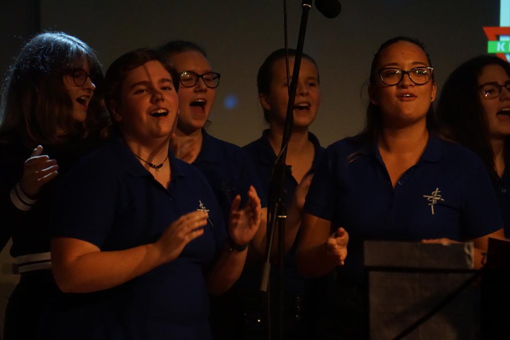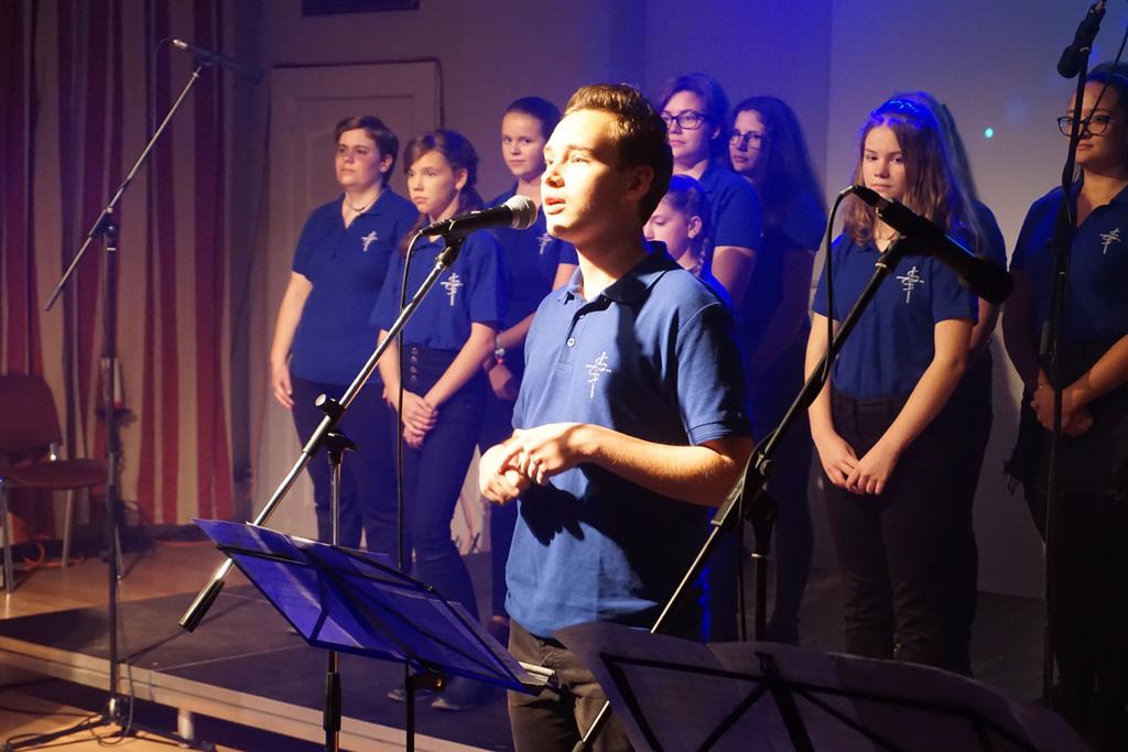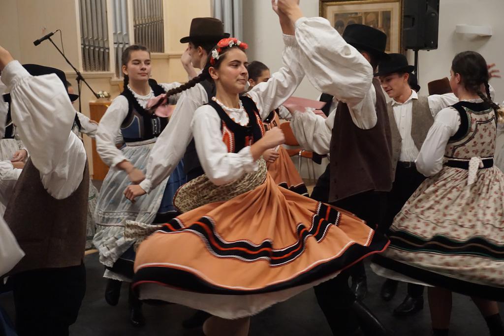 Német vendégeink tiszteletére adtak koncertet a Ten Sing Savariae fiataljai és mutatkoztak be iskolánk néptáncos növendékei. A zenés estre megtelt az evangélikus kápolna nézőtere, s nagy sikert arattak diákjaink.