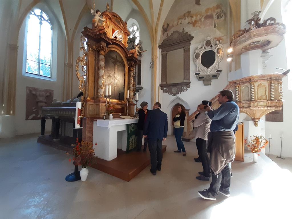 Sabine Hofer lelkésznő bemutatta az evangélikus gyülekezet és templom történetét és a reformációi kiállításon kalauzolt el bennünket, majd részt vehettünk az iskola őszi fesztiválján.