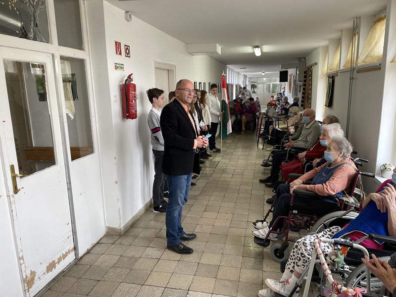 Iskolánkban hosszú évek óta hagyomány, hogy tanulóink a nemzeti és egyházi ünnepekkor felkeresik a két otthon lakóit és közösen ünnepelnek velük. Ez iskolánk pedagógiai programjának is szerves részét képezi emelte ki Sátory Károly, iskolánk igazgatója beszédében, aki az ünnepségen köszöntötte az otthonok lakóit és egyben sajnálatát fejezte ki a pandémia miatt elmaradt közös programok kapcsán. A köszöntést követően felsős tanulóink kis műsorukkal emlékeztek a 48-as forradalom és szabadságharc hőseire.